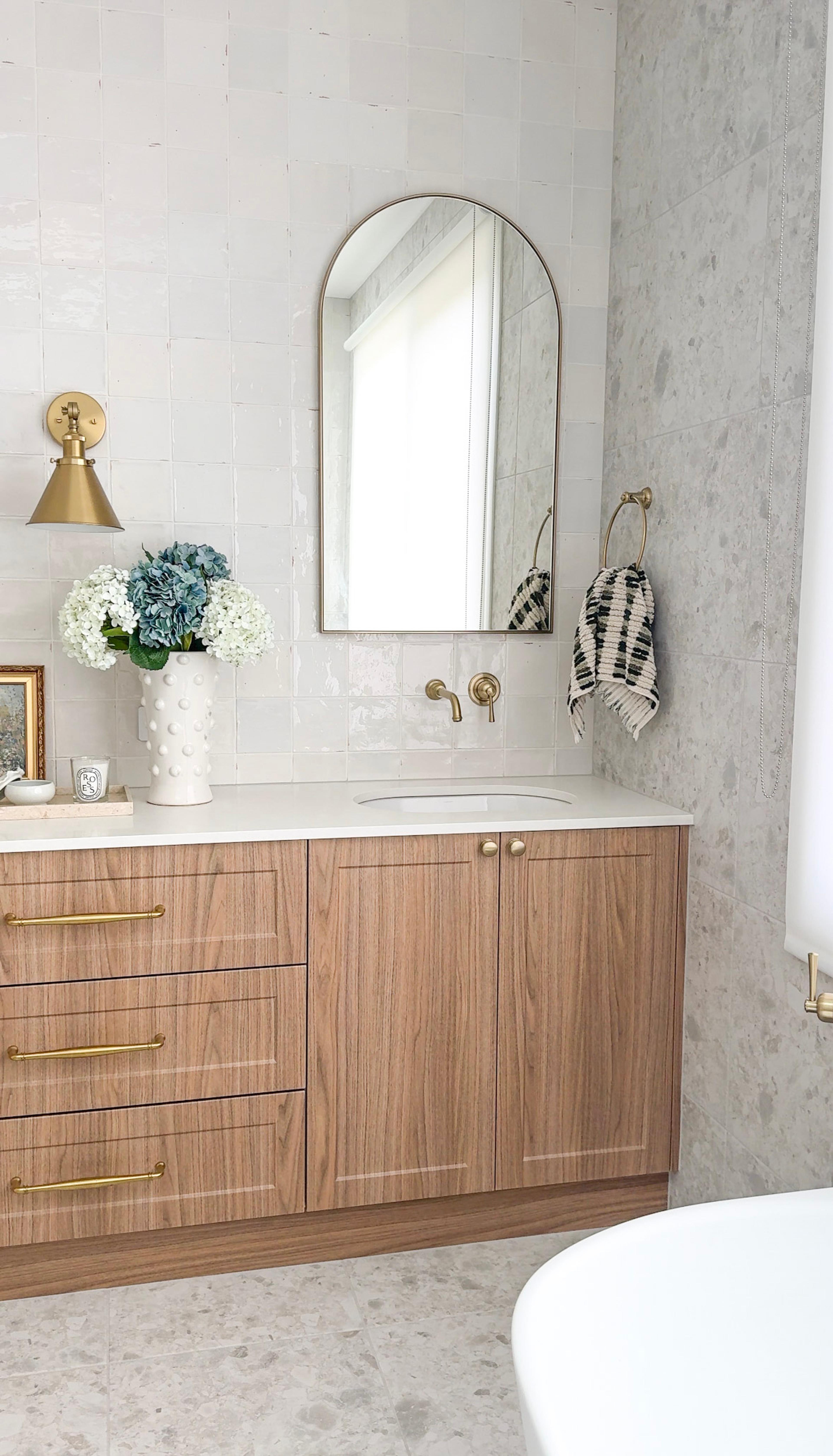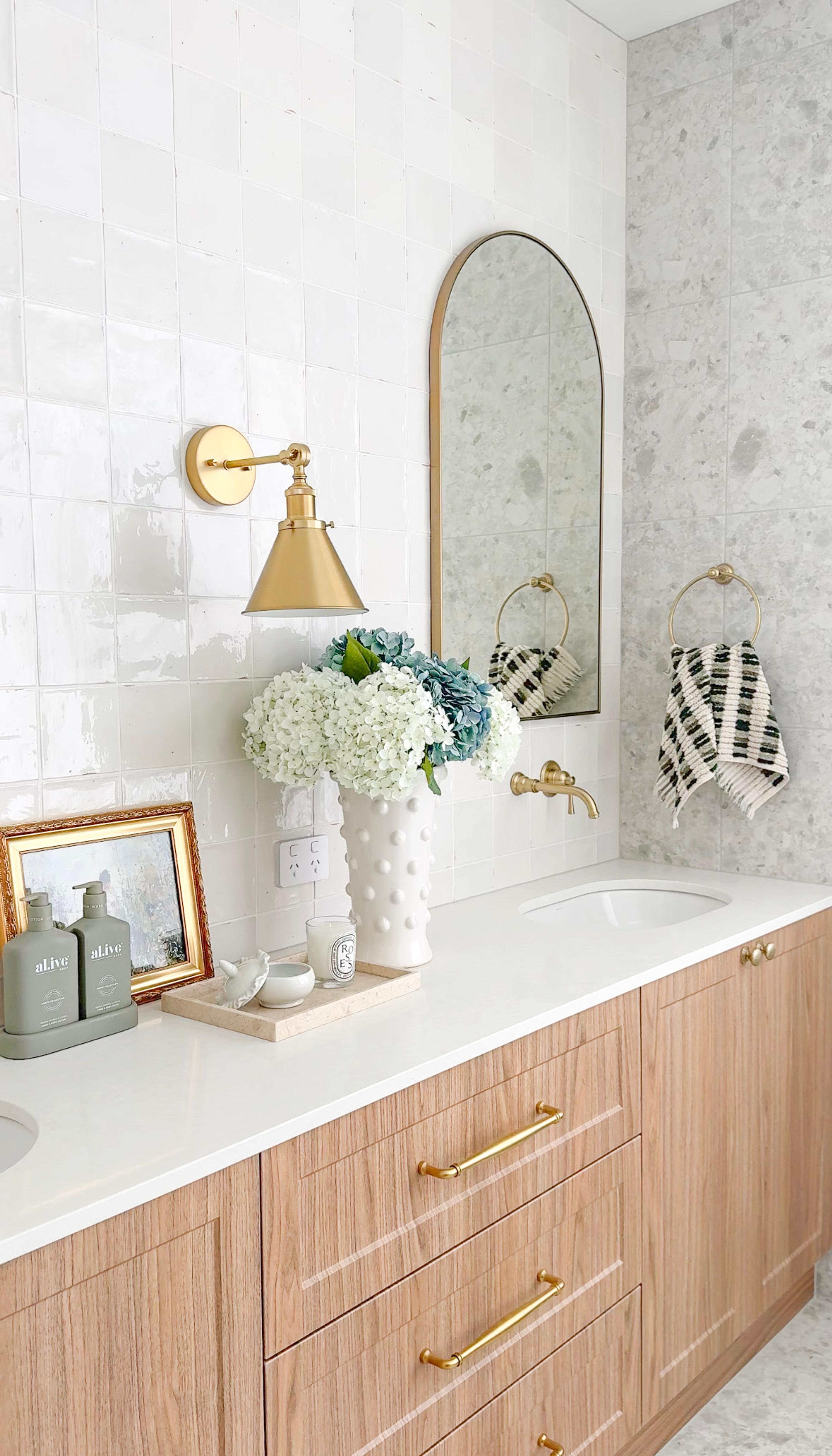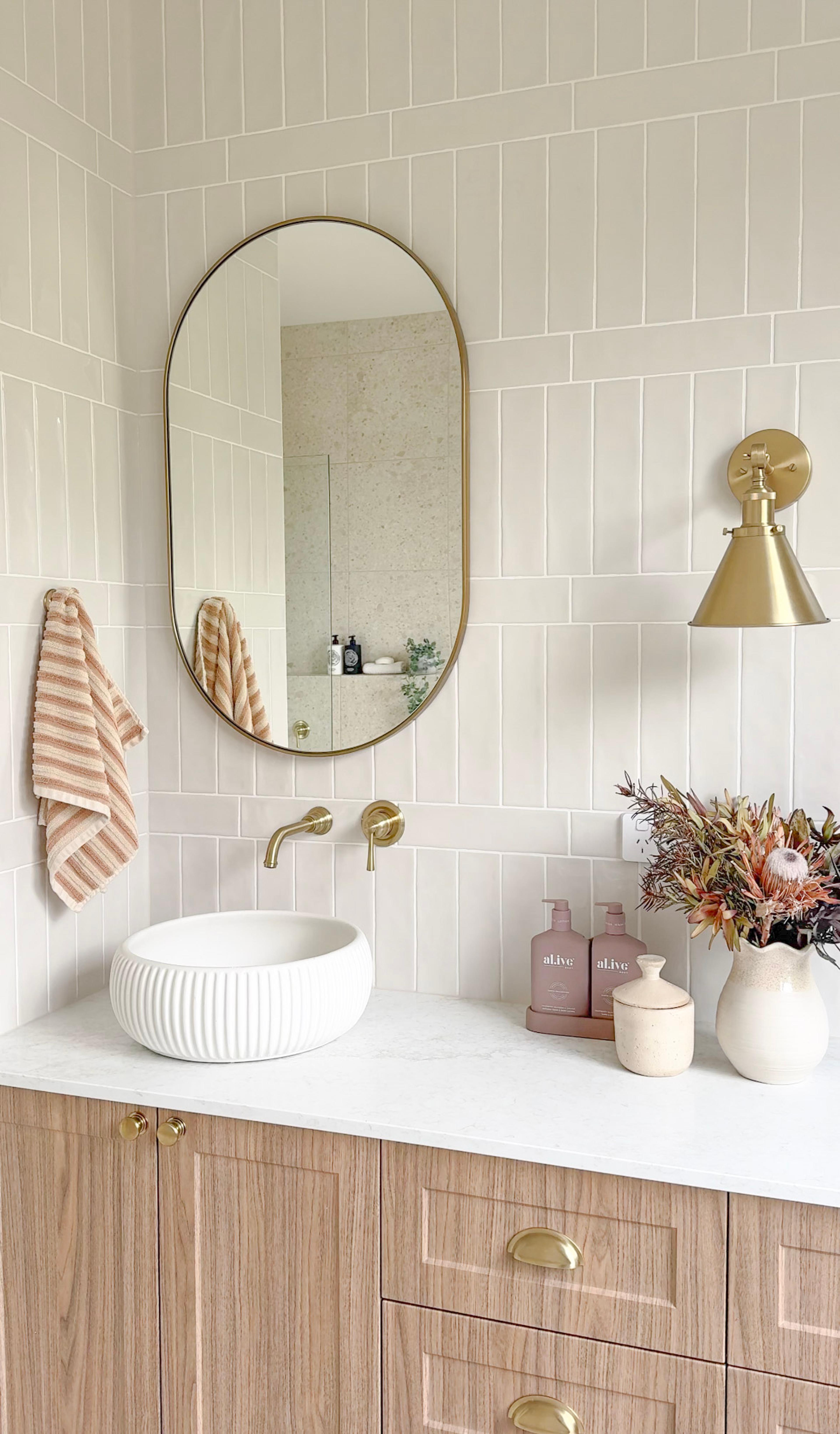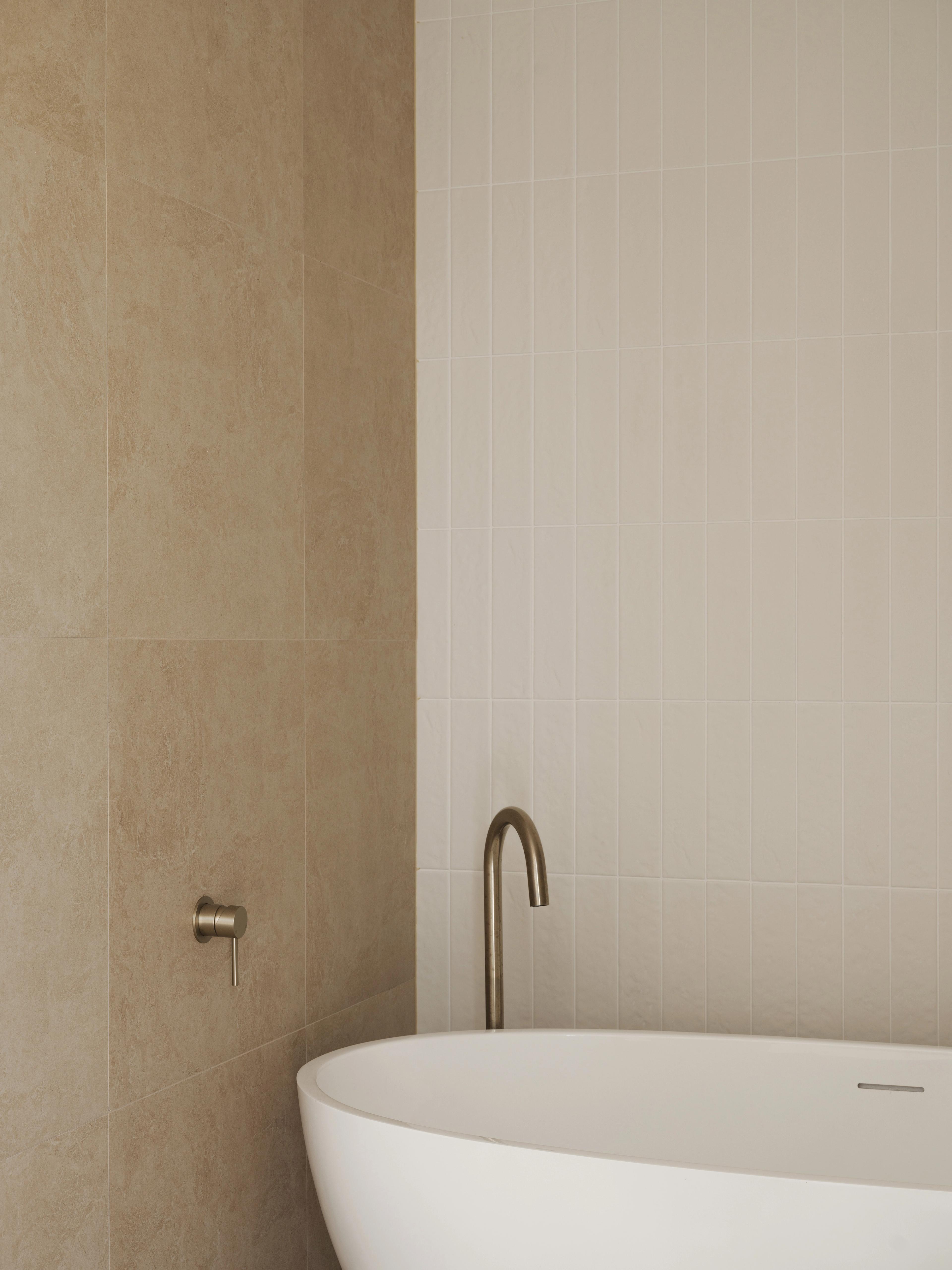 Juliana from @themounthaus has created a space that’s soft and layered, all while mixing textures across tiles, timber and tapware. When it comes to mixing tiles, this is your blueprint: tonal variation, finish contrast and clean lines.