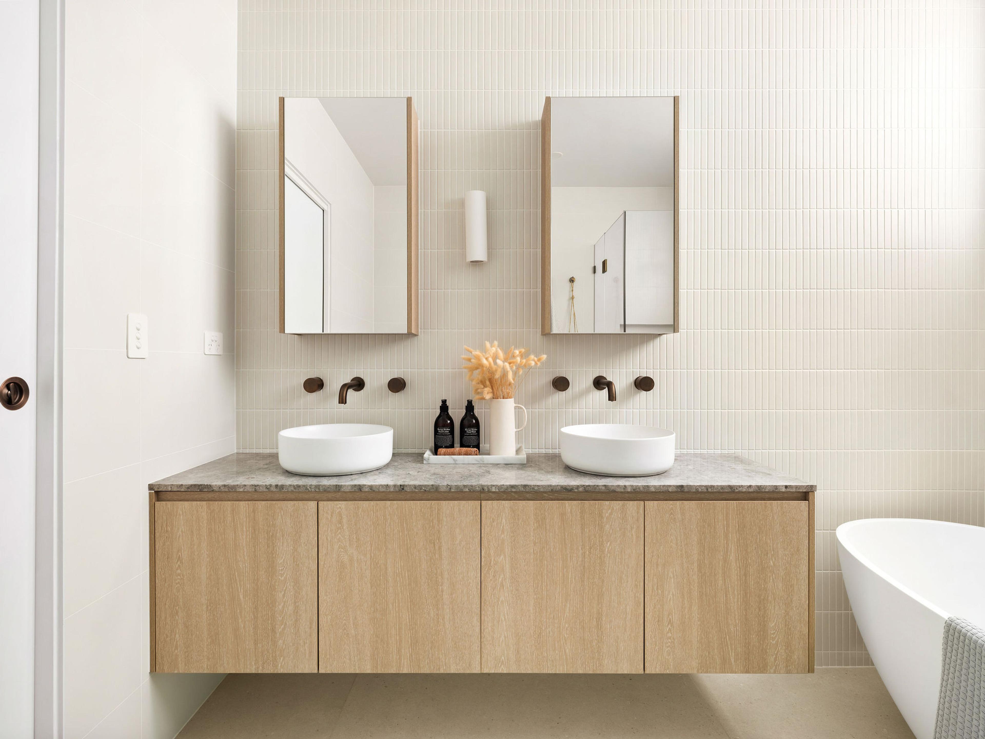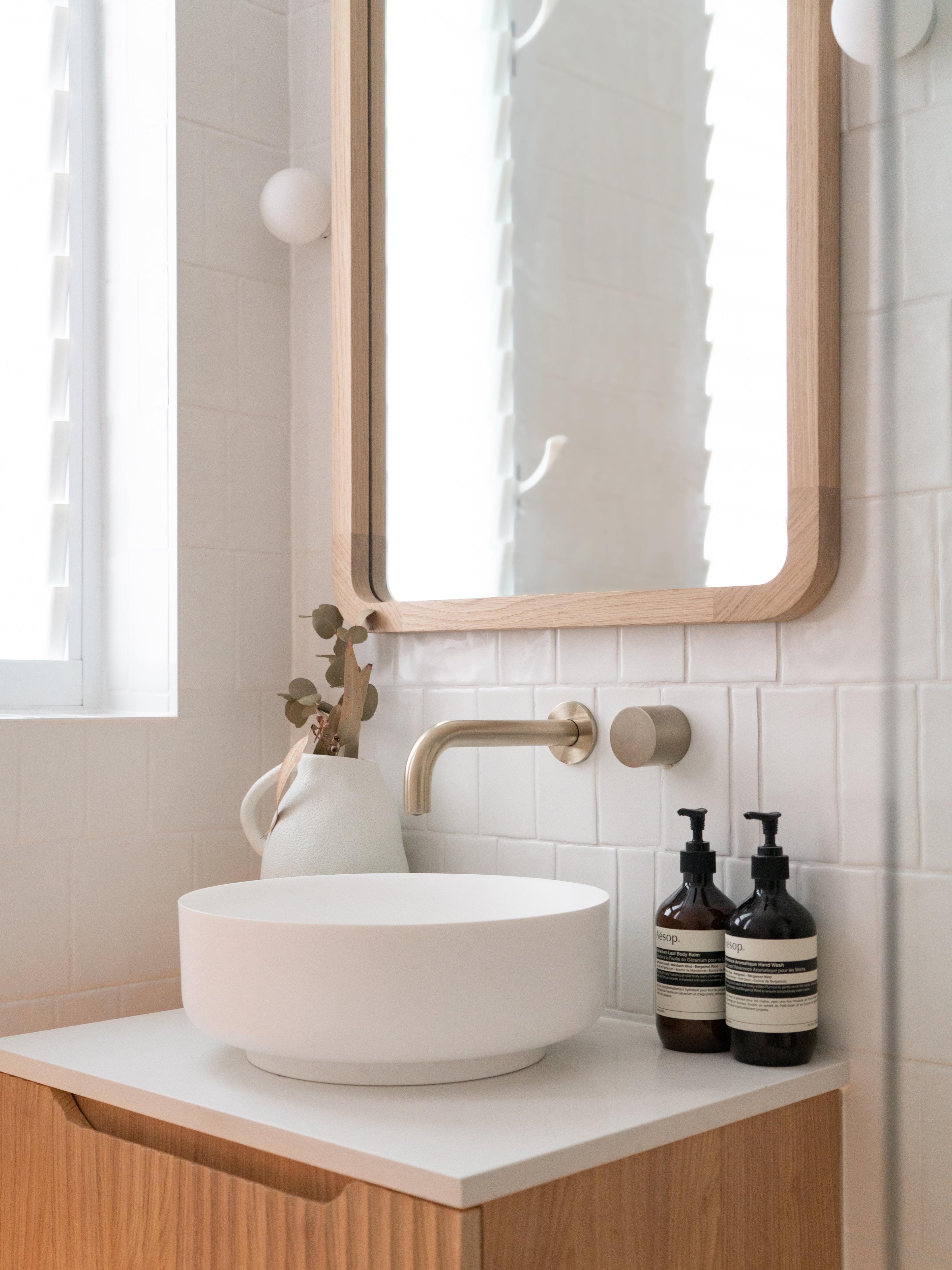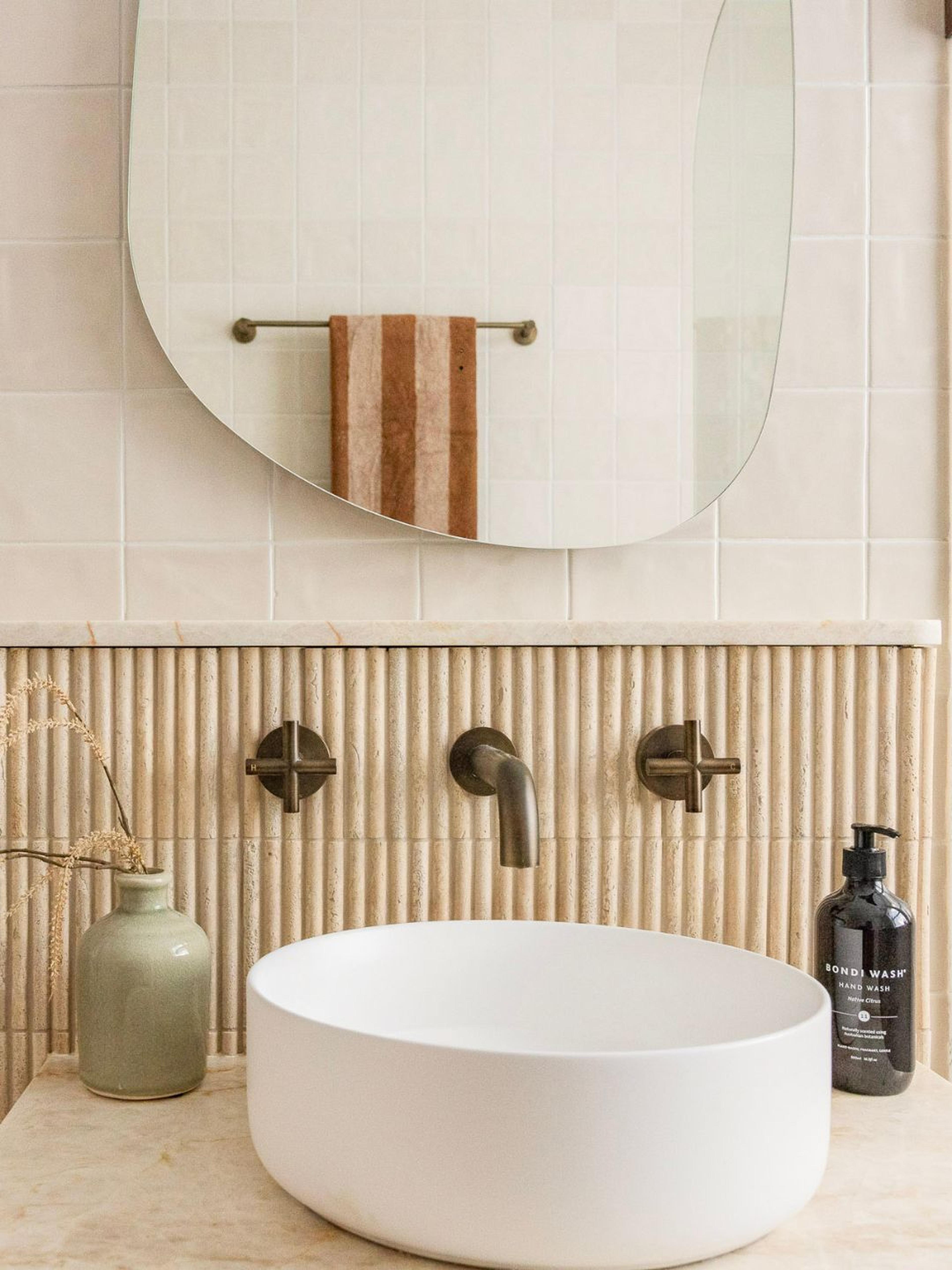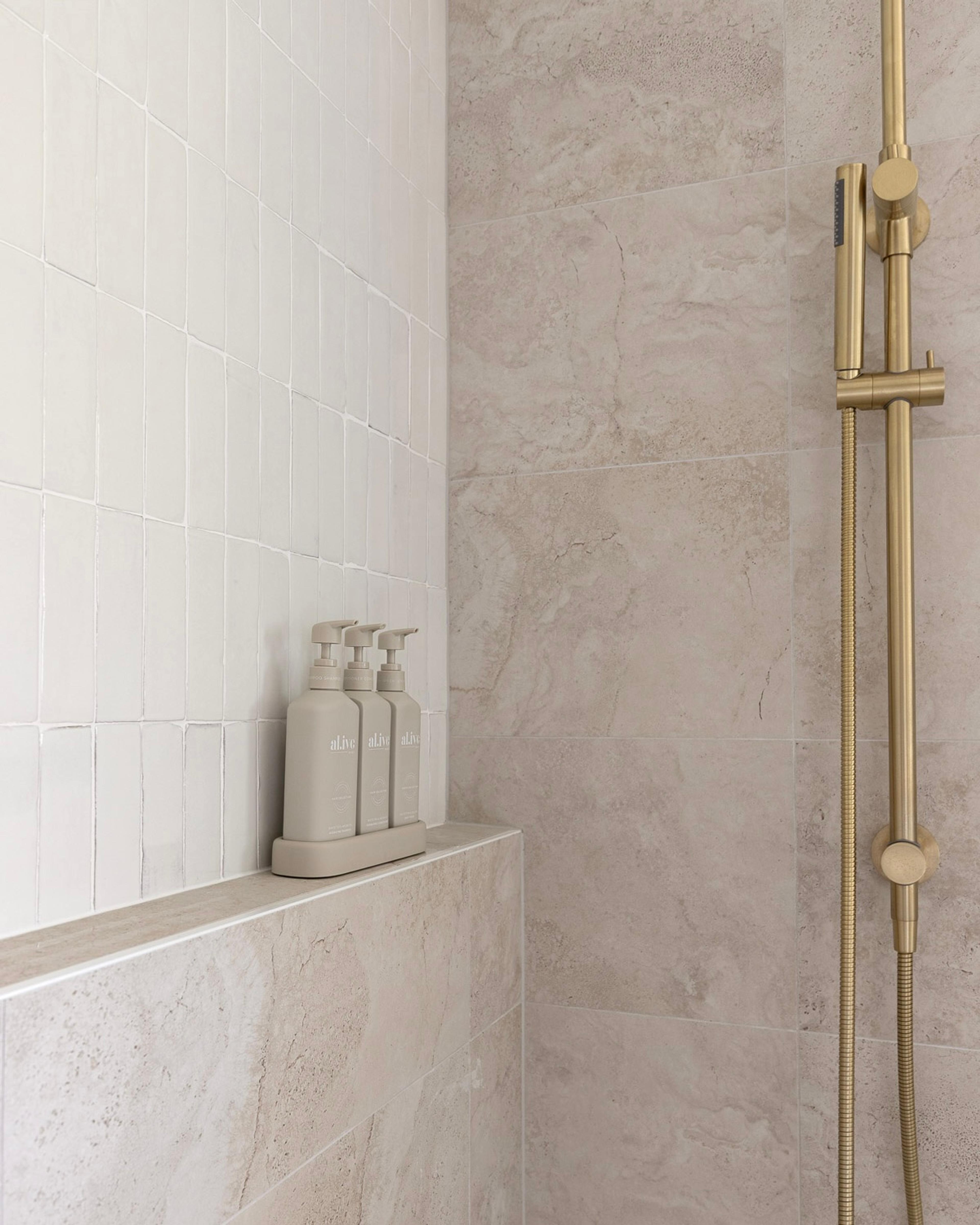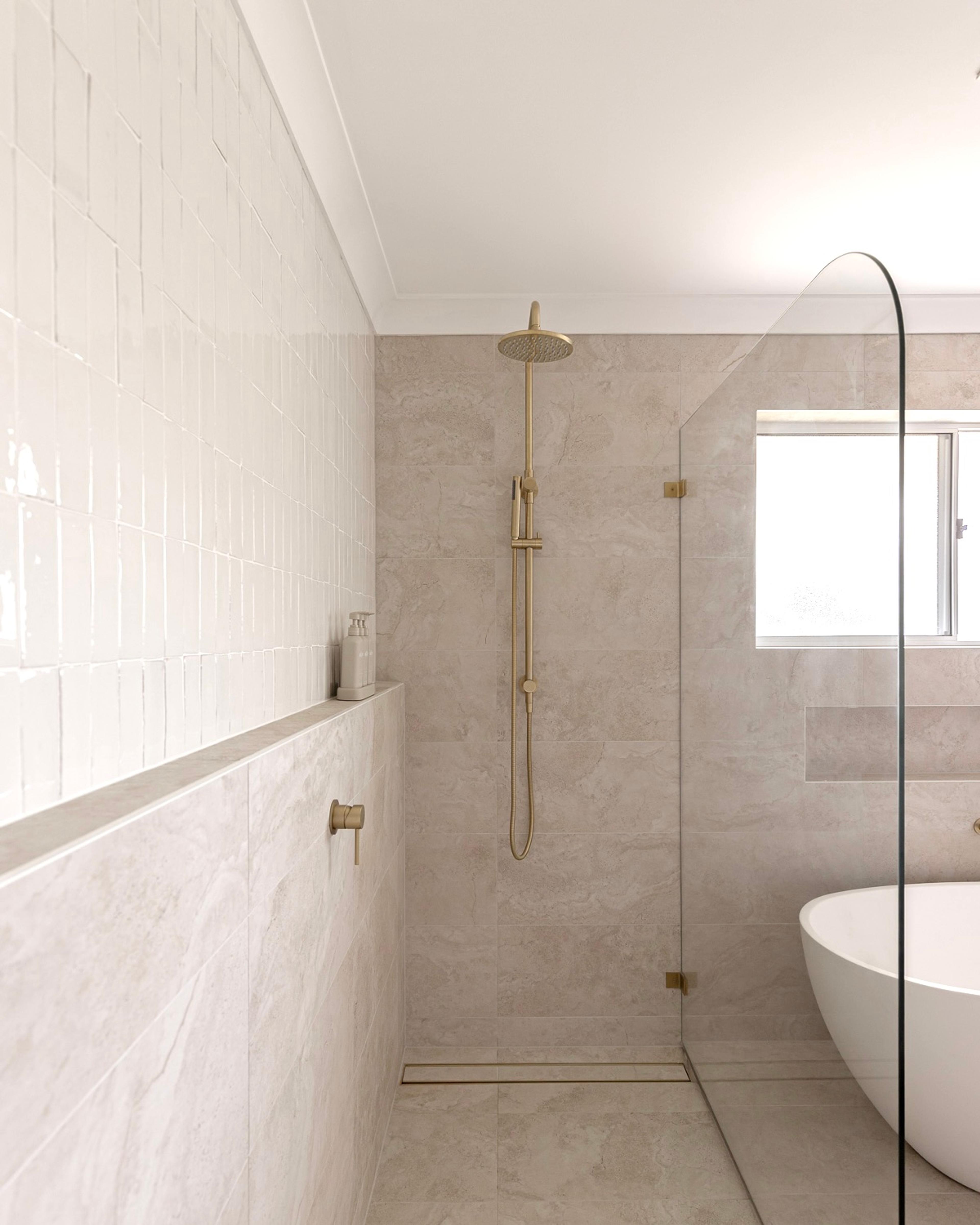 Juliana from @themounthaus has created a space that’s soft and layered, all while mixing textures across tiles, timber and tapware. When it comes to mixing tiles, this is your blueprint: tonal variation, finish contrast and clean lines.