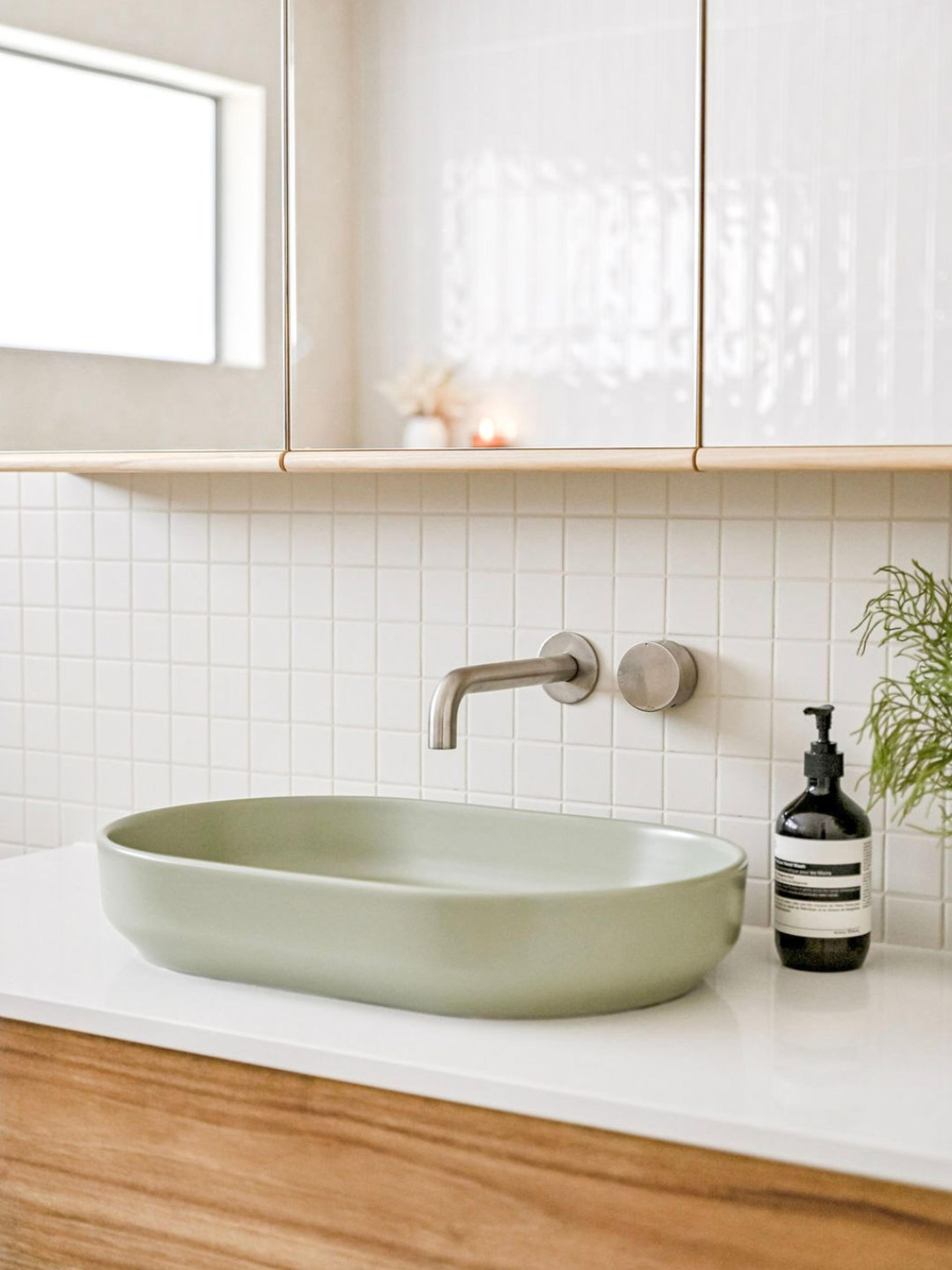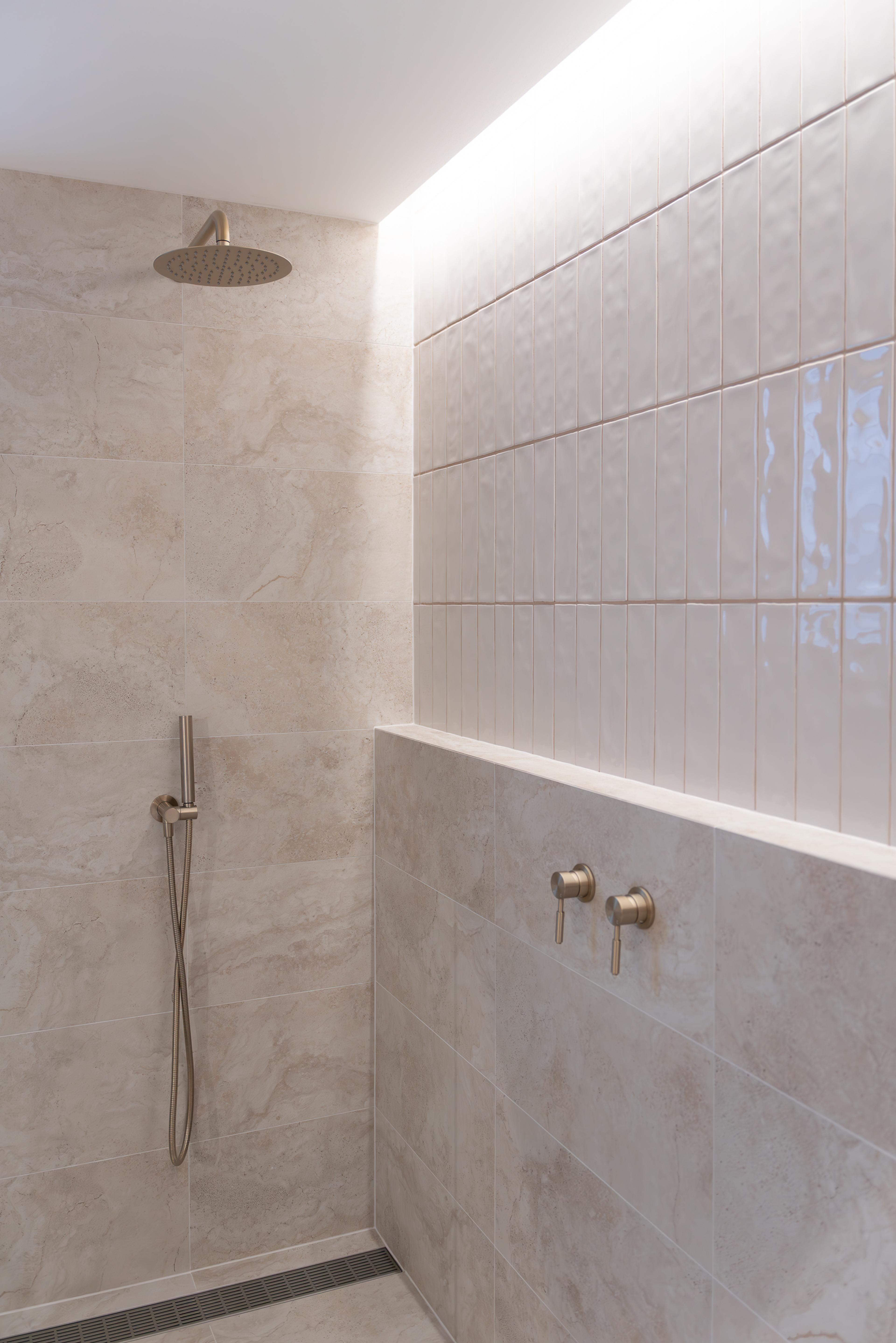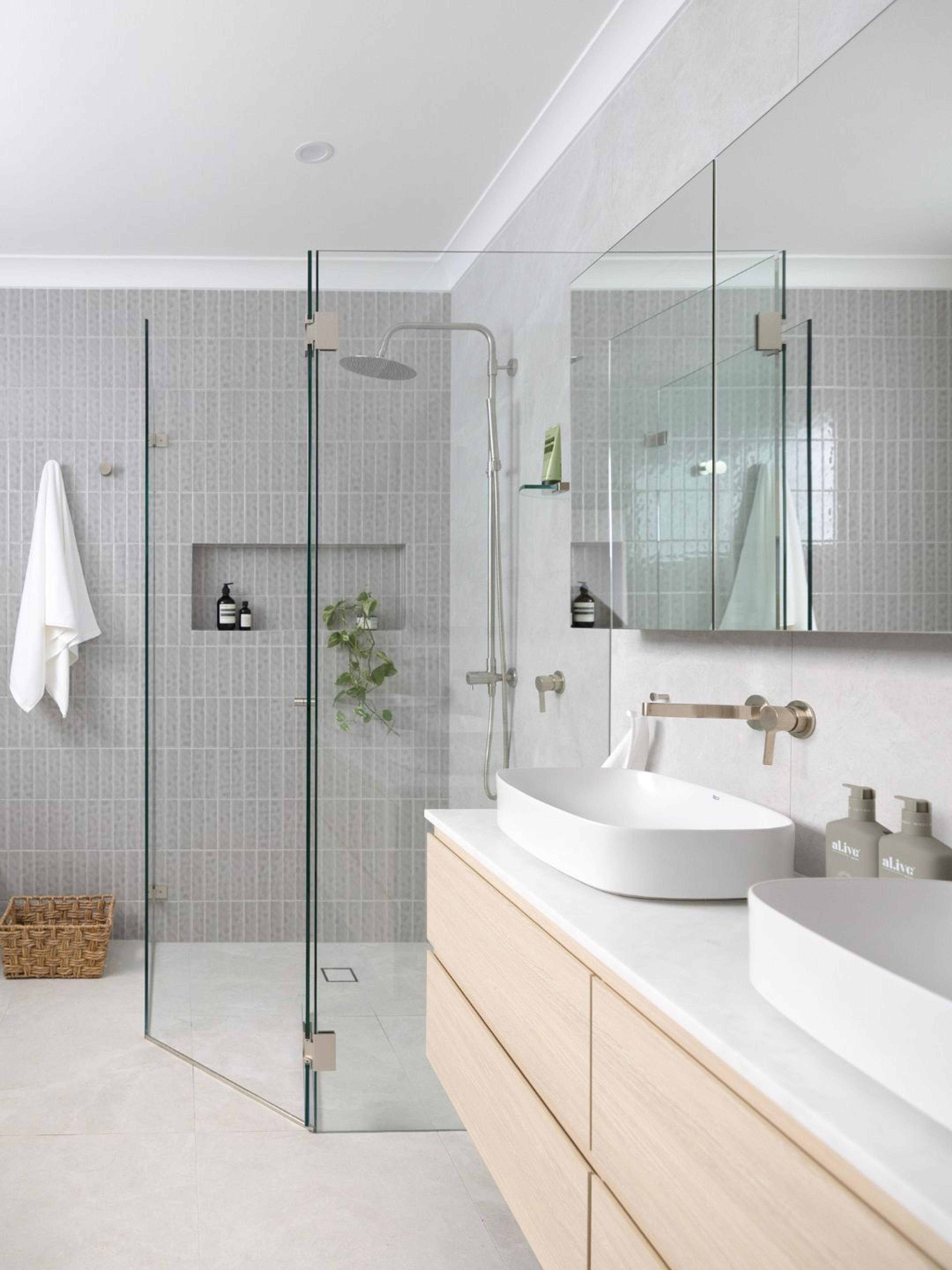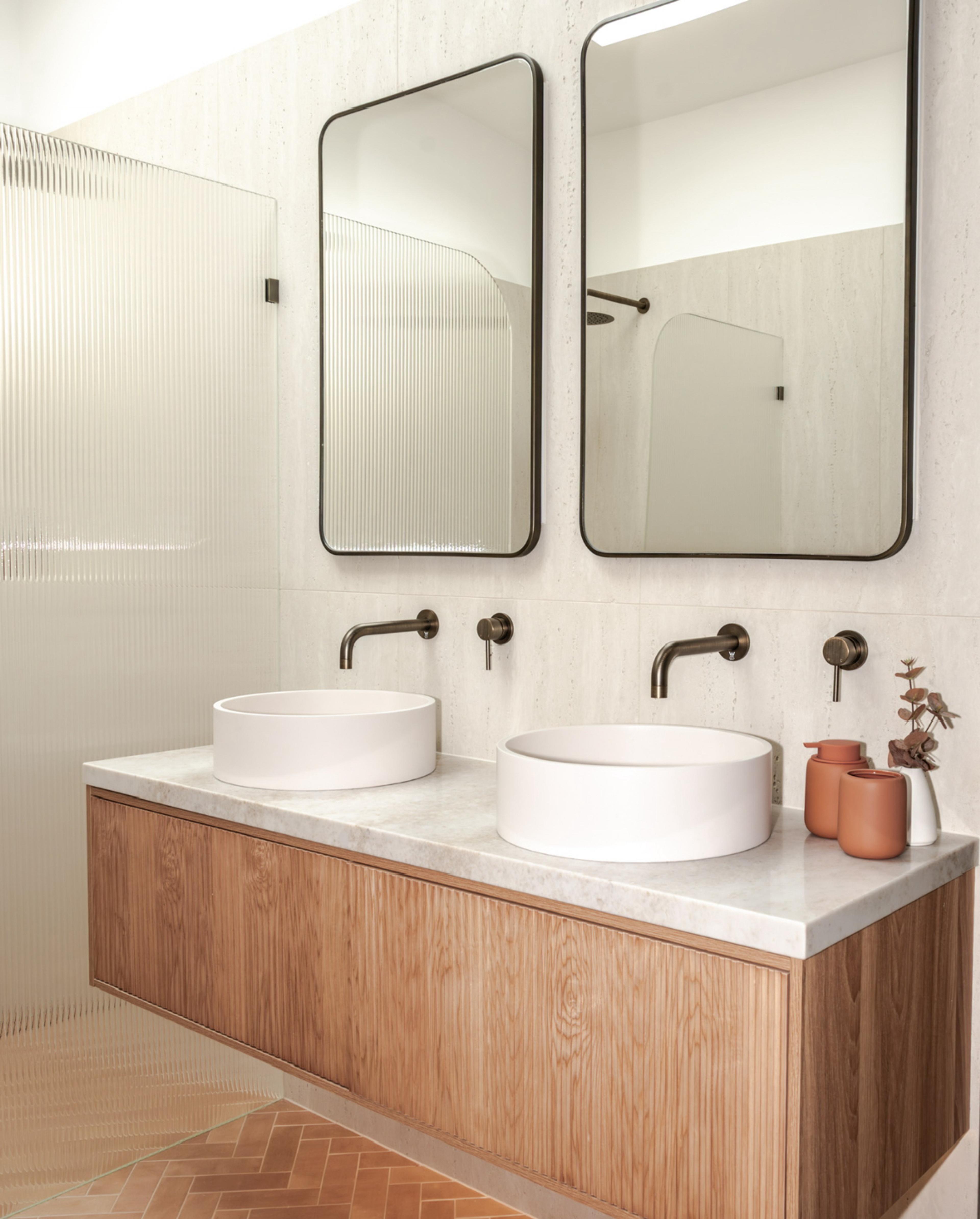 Juliana from @themounthaus has created a space that’s soft and layered, all while mixing textures across tiles, timber and tapware. When it comes to mixing tiles, this is your blueprint: tonal variation, finish contrast and clean lines.