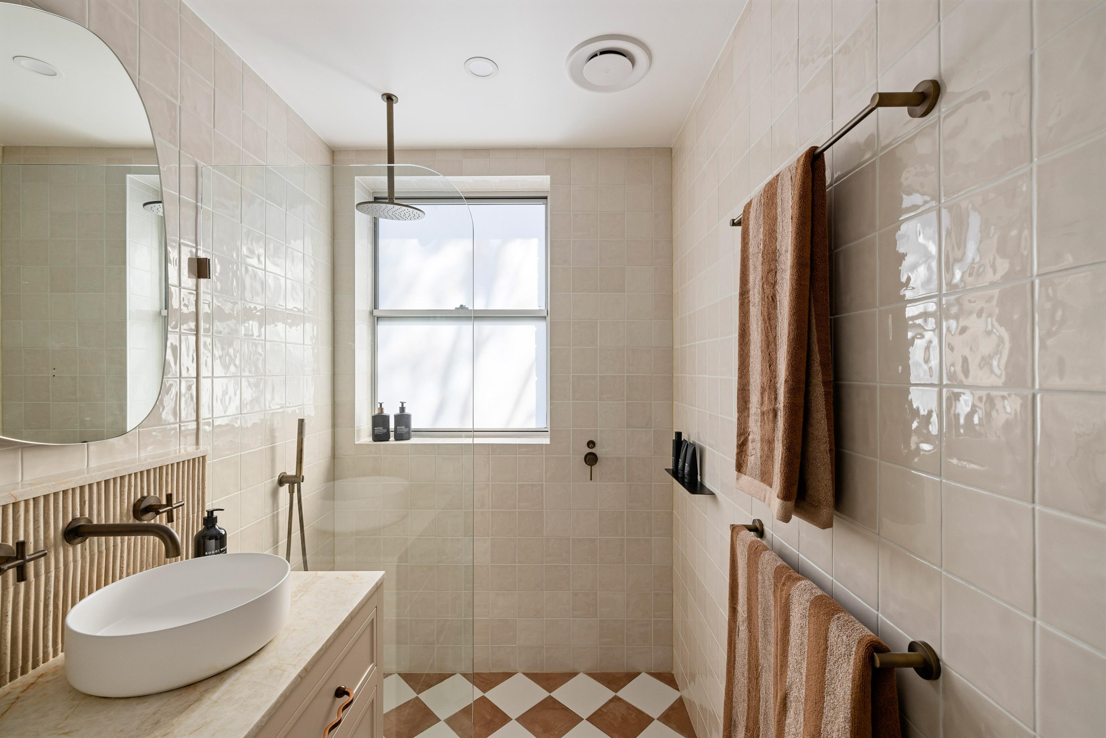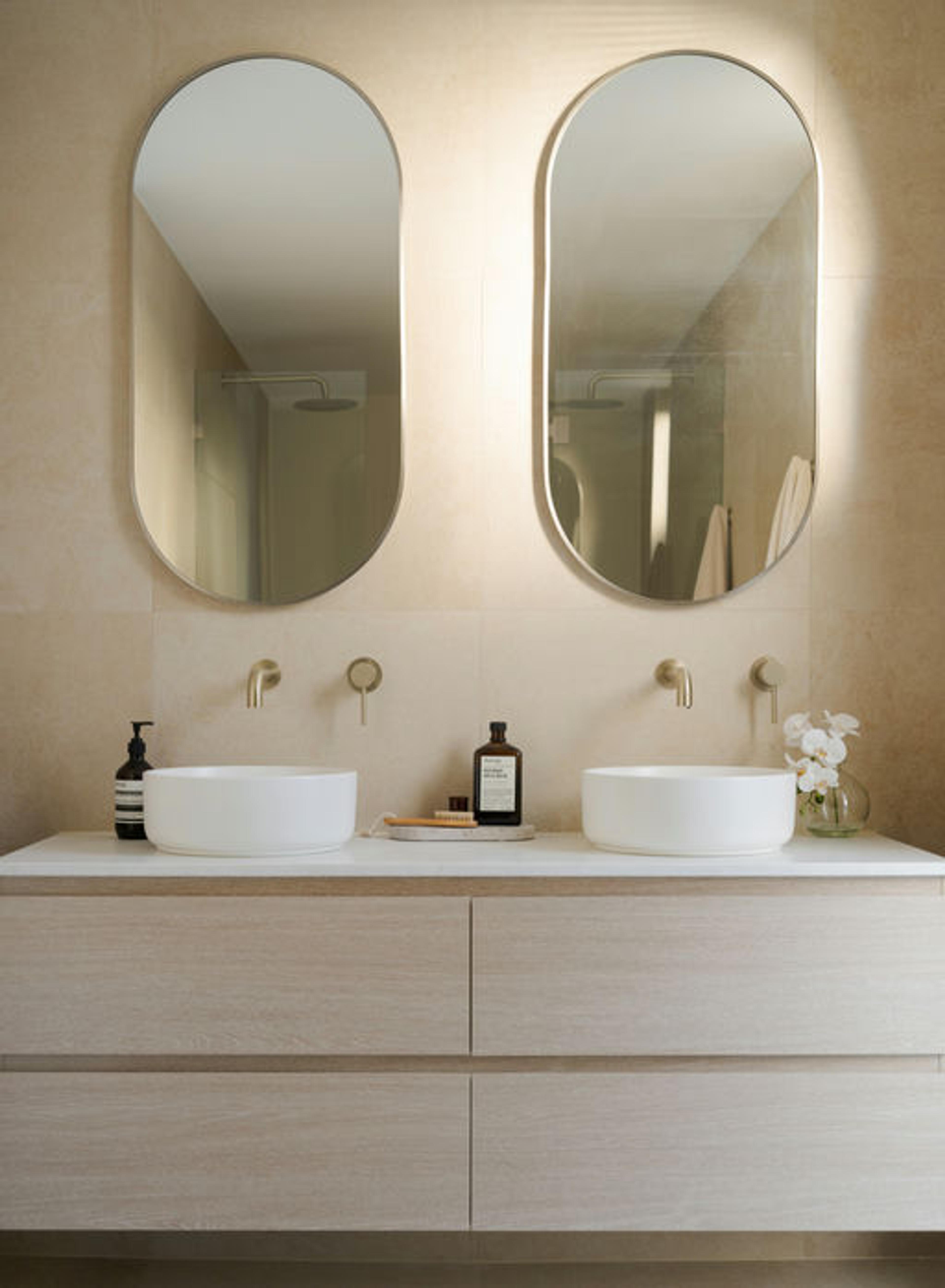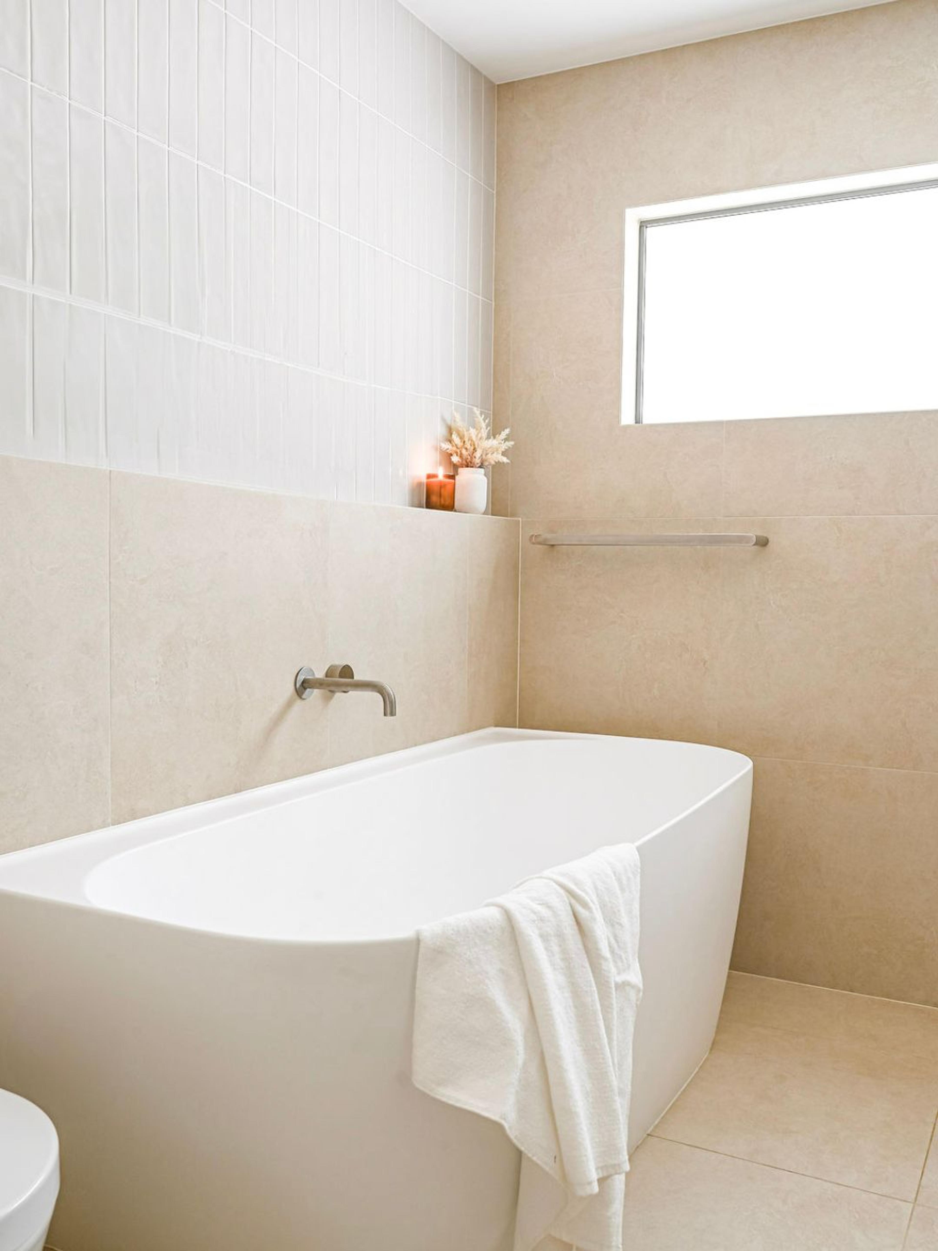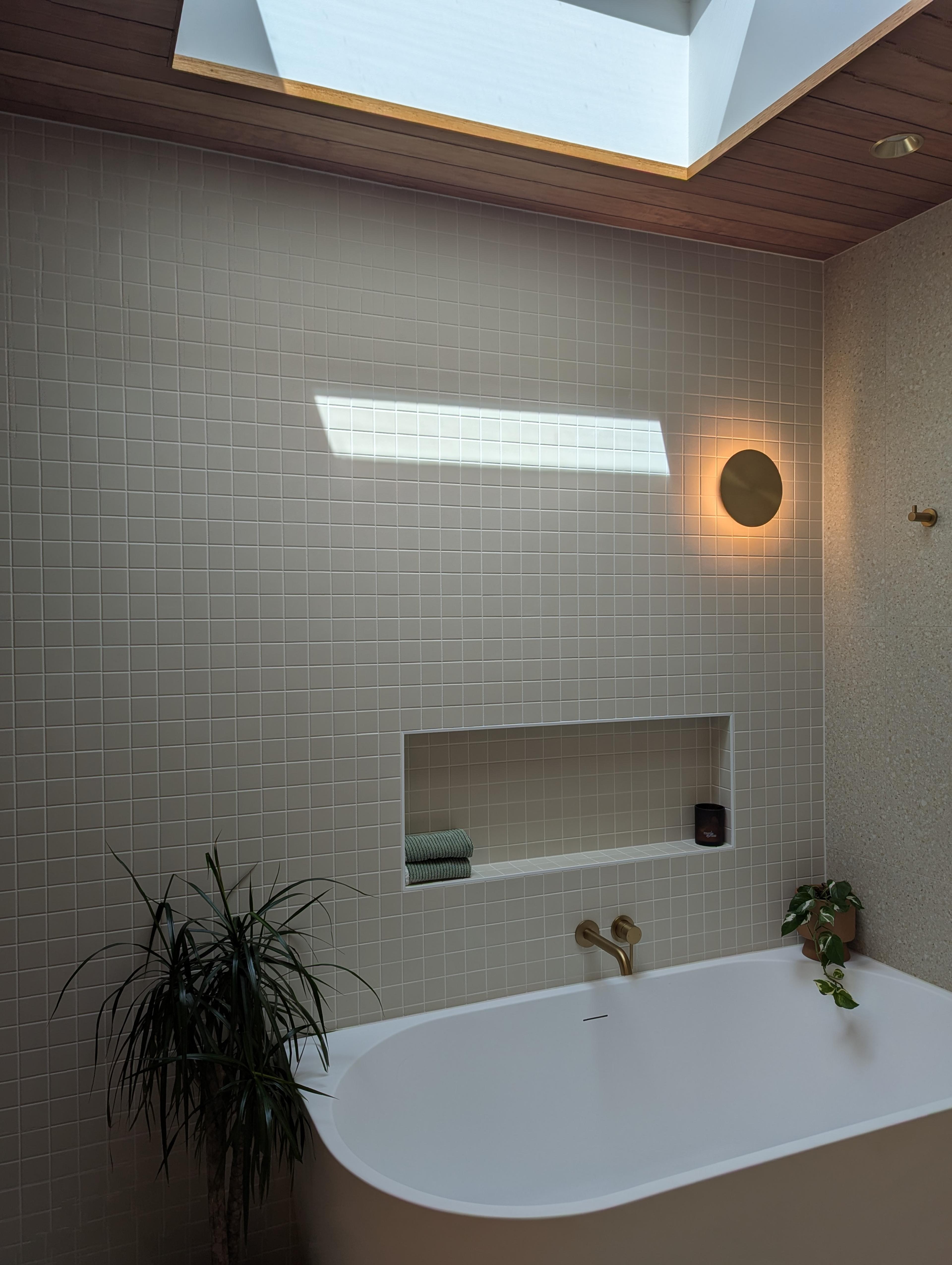 Juliana from @themounthaus has created a space that’s soft and layered, all while mixing textures across tiles, timber and tapware. When it comes to mixing tiles, this is your blueprint: tonal variation, finish contrast and clean lines.