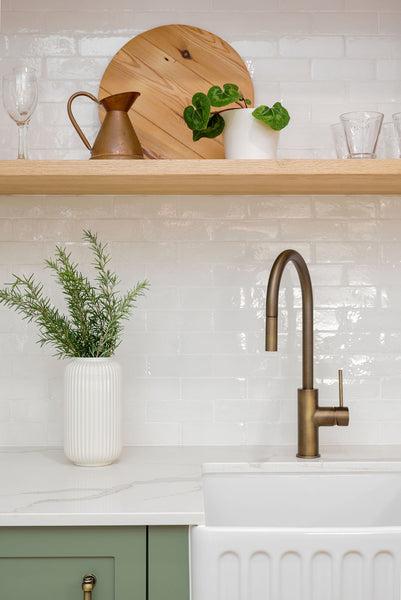 If you haven’t heard of zellige tiles, where have you been?! Originating from Morocco, these square tiles are perfect for a feature splashback. Their texture effortlessly complements that classic kitchen look whilst also being easy to clean and maintain.
