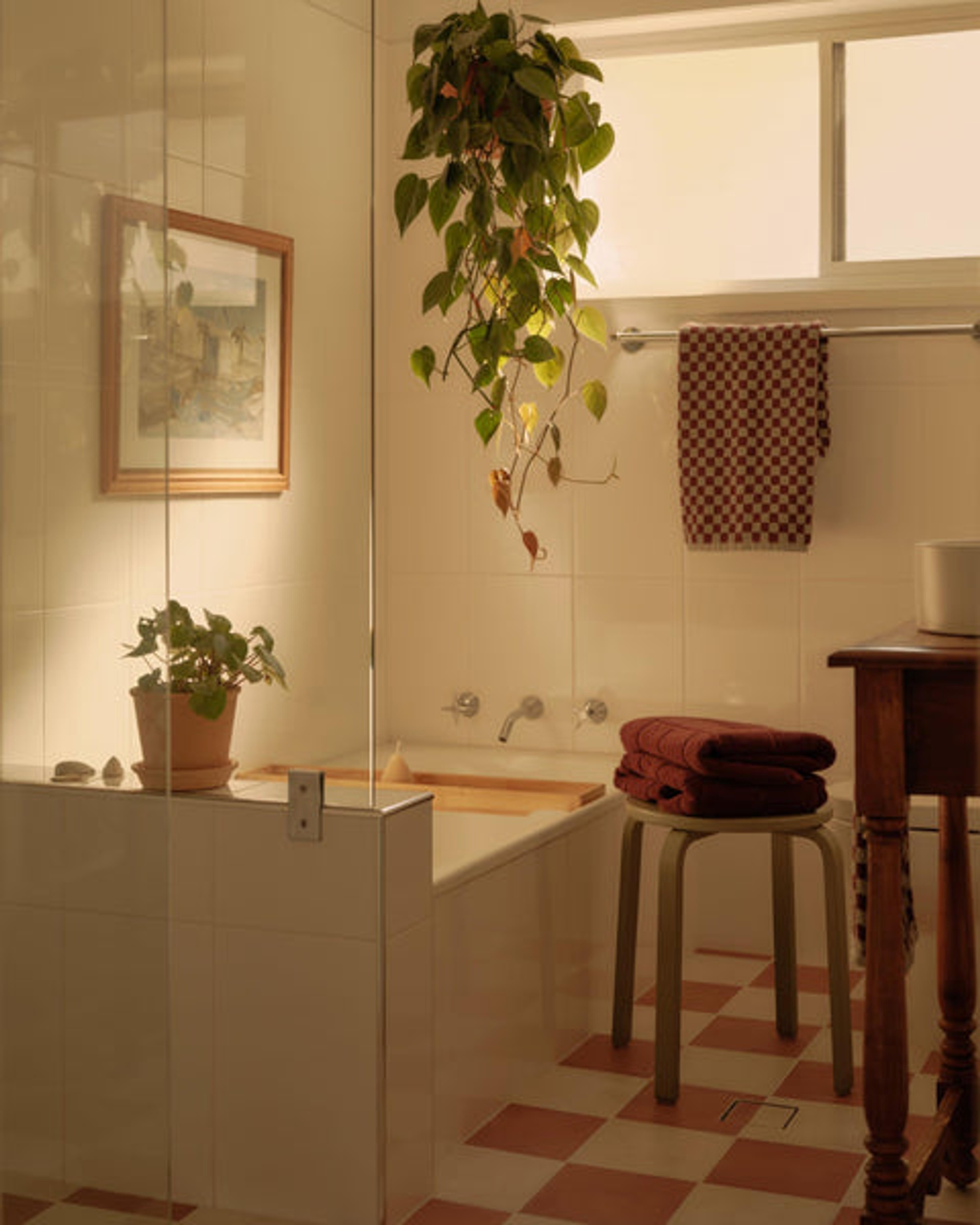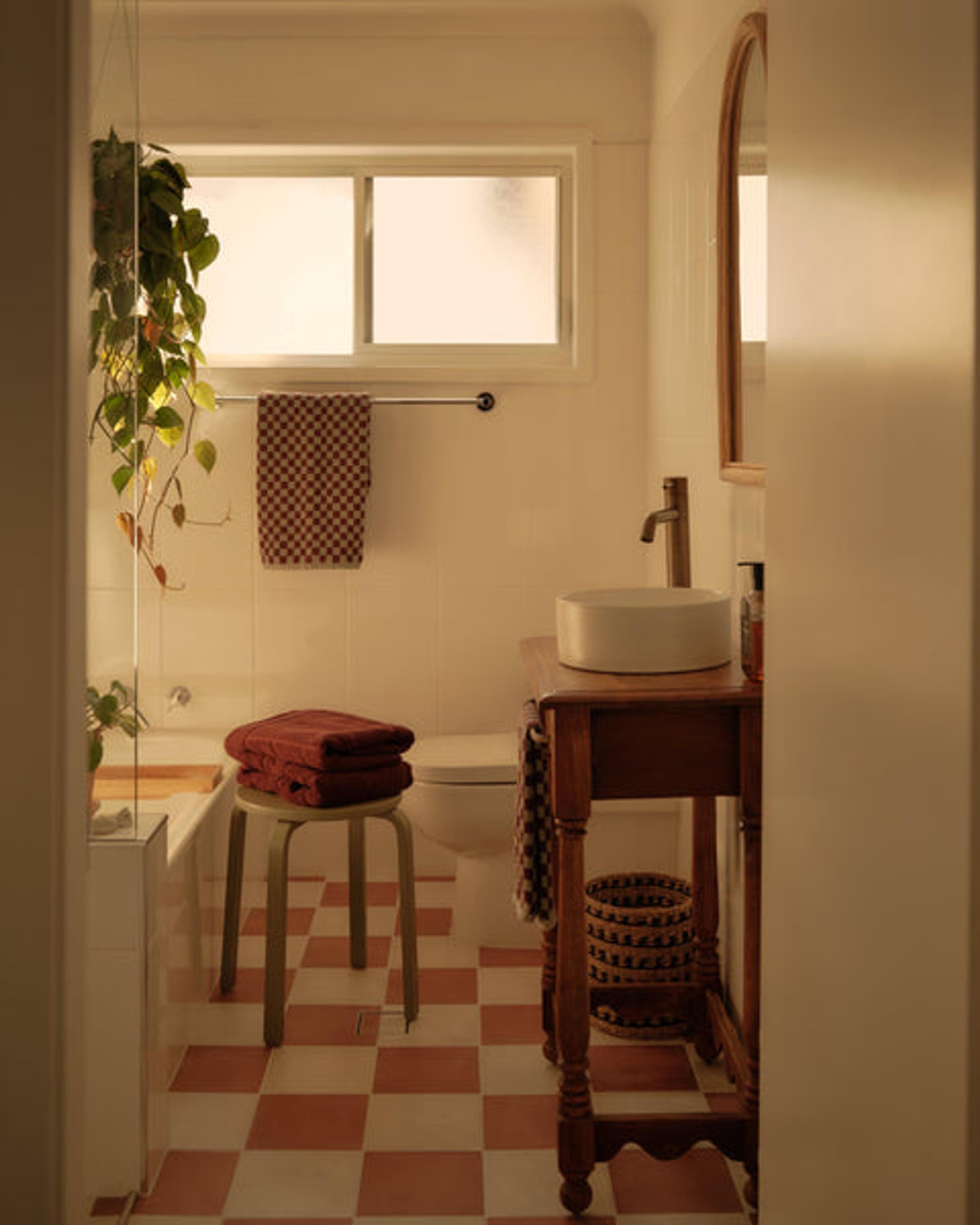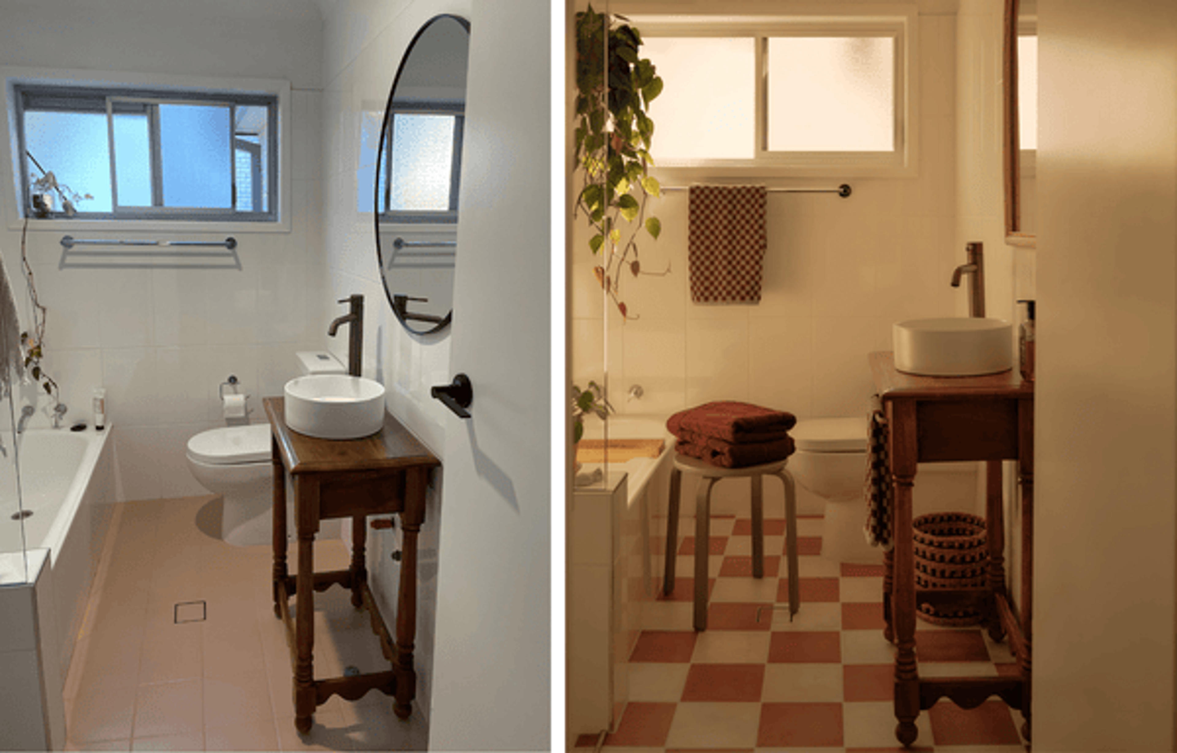 “When we bought the house, it had already undergone a renovation. We knew we wanted to inject more character and warmth into it and align it with how we like to enjoy a space,” they explained. “We felt that colour was a good place to start. We prioritised creating a cosy backyard with the kitchen window being transformed into a breakfast bar. Most of our budget went into these two things which didn't leave us much for the bathroom.”