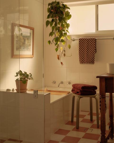 To achieve the look they were envisioning, Brooke and Gemma opted for TileCloud Bronte Terracotta Checkerboard Tiles for the flooring and complemented this with Yabby’s Antique Brass Tapware fixtures. “We used TileCloud for the bathroom, aiming to change the look and feel and remove the outdated floor tiles that lacked character and uniqueness,” they said.