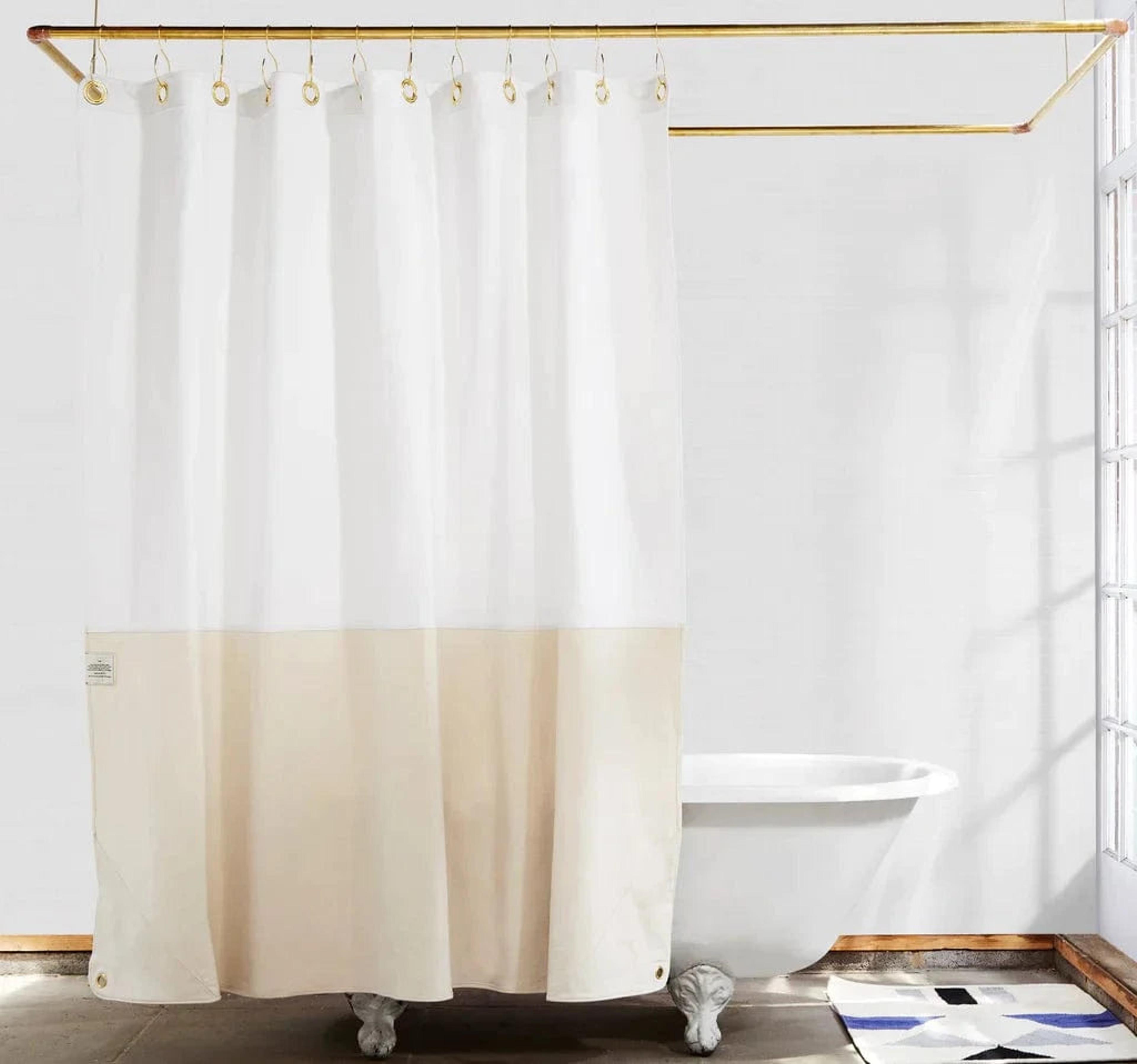 Choose a shower curtain that reflects your style, like those offered at Oliver Thom —whether it's bold patterns or serene, solid colours—to add a personal touch to your space while keeping water off the floor.