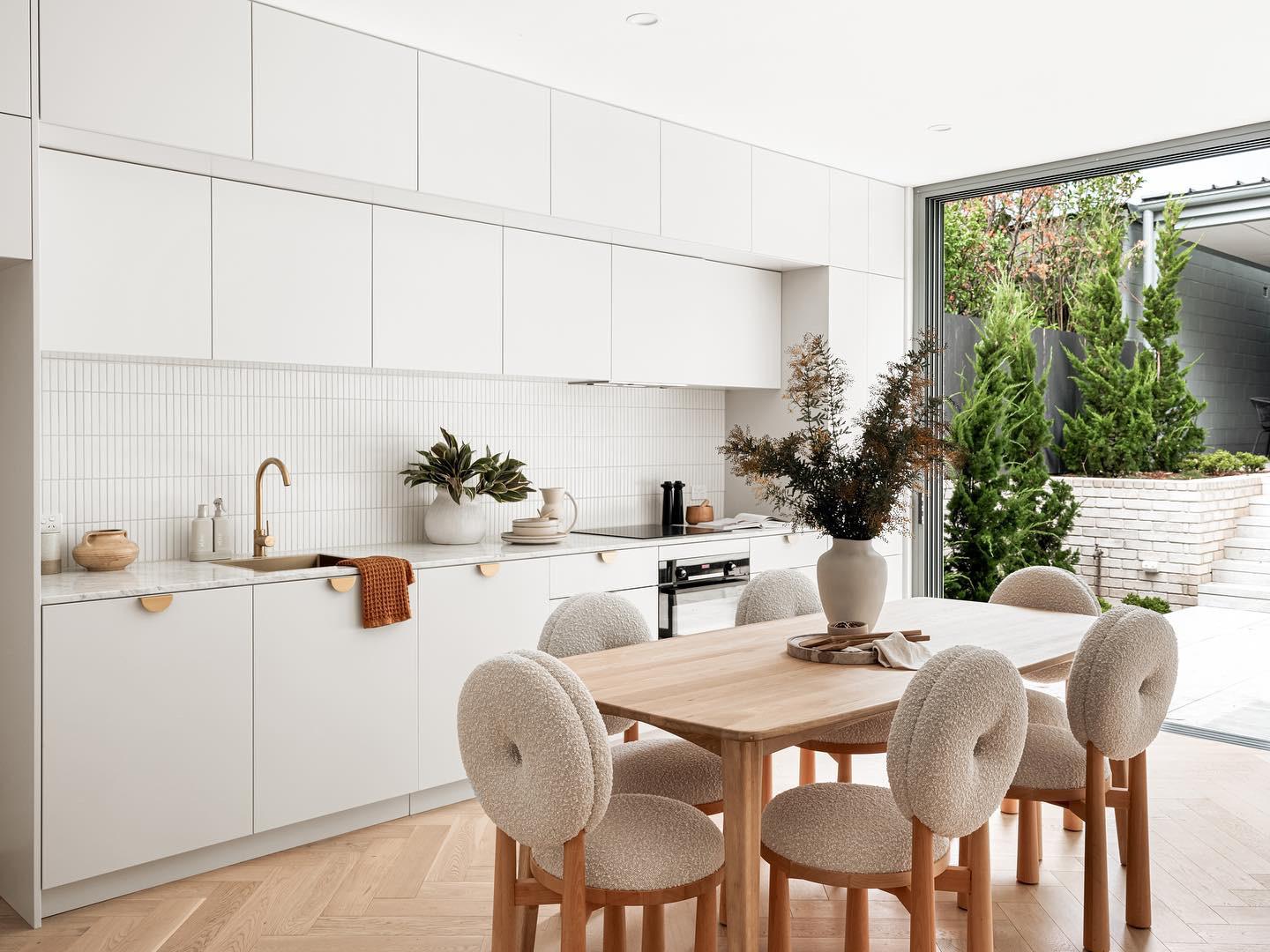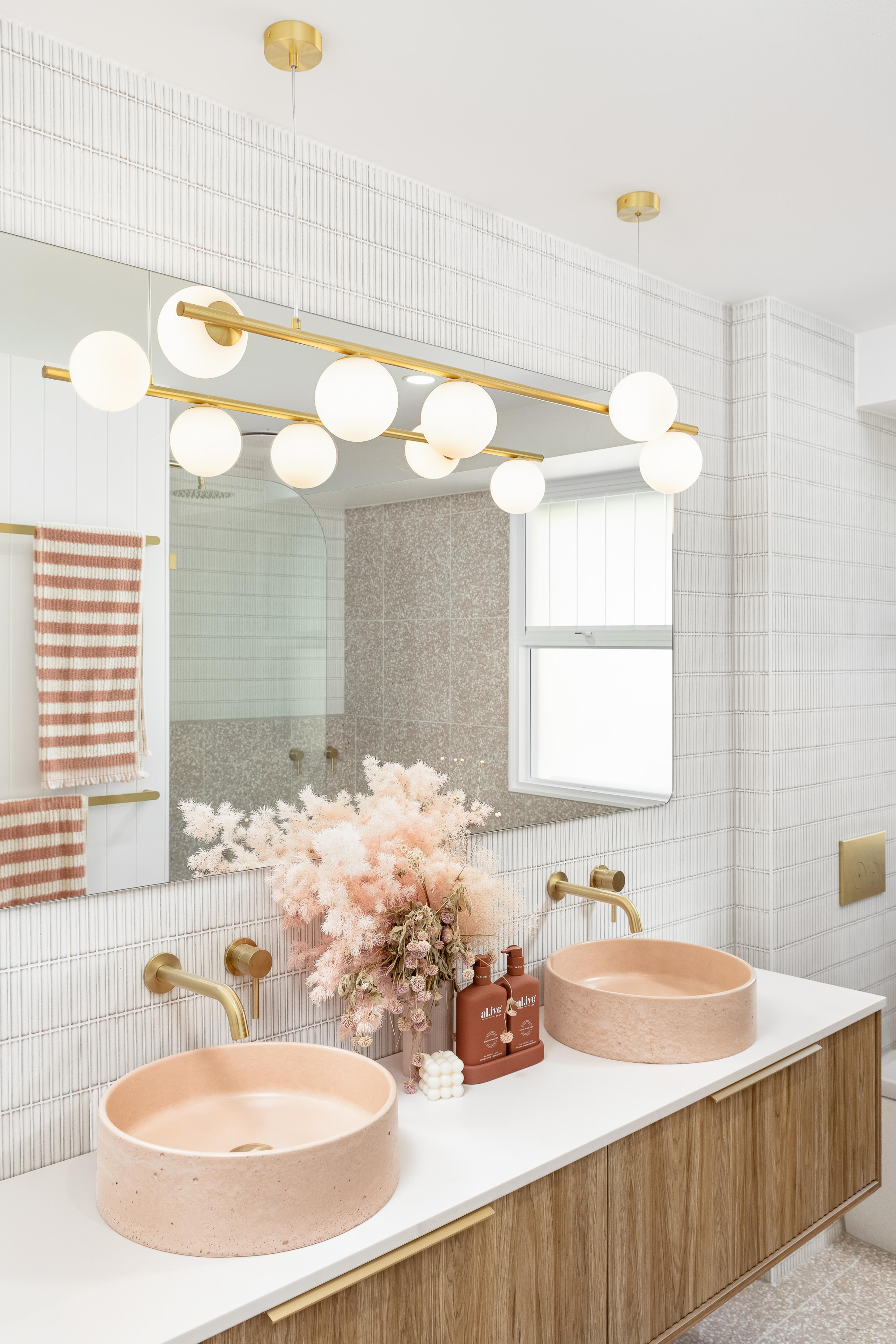 A soft, warm colour palette with gentle, earthy tones to make the most of the sunlight. Our Paddington Terracotta Terrazzo Look Tile and Coogee Antique White Kit Kat Mosaic Tile pair perfectly with wooden materials for a natural feel.