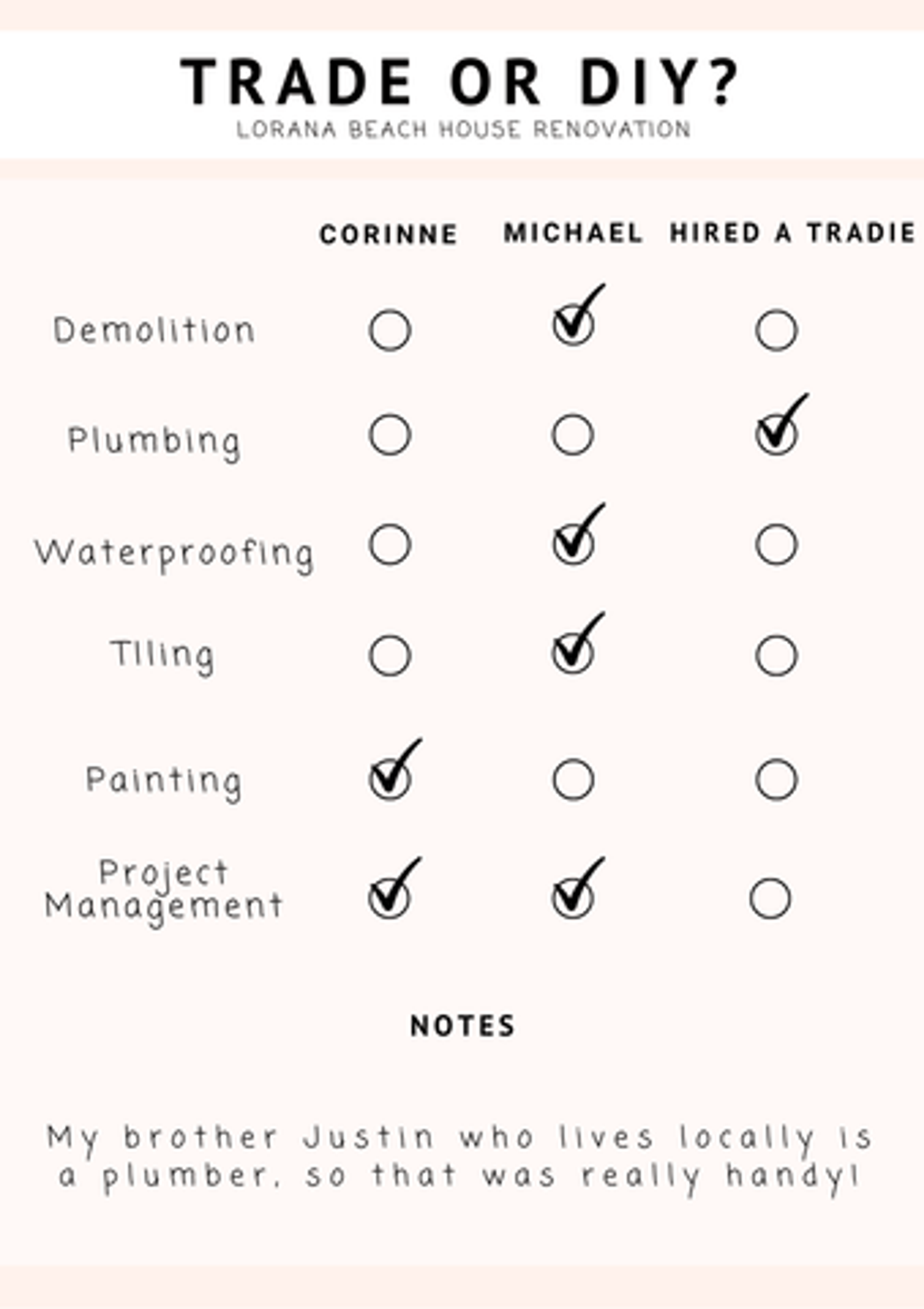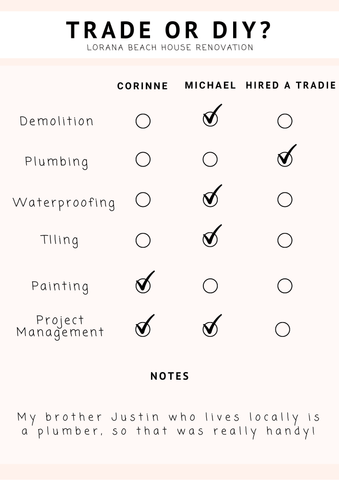 No, lucky for me my husband is not really a hands on “tradie” kind of guy so that worked out well - I was able to take charge while he looked after the kids.