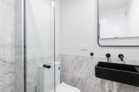 We got chatting with Designer/Stylist- Laura about her role with Equnox Designs and their recent project "City Artist" which was just been completed in Paddington. The apartments only bathroom got a complete transformation using our Potts Point Carrara look tile and the Broadwater Matt White Penny Round mosaic.