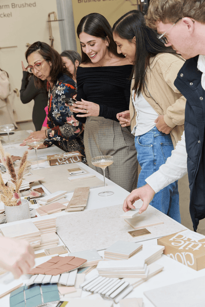 With glasses of rosé & canapes in hand and samples at the ready, guests were guided through the art of flatlaying by our expert TileCloud design team alongside Steph & Gian, who shared tips from their own Japandi-style renovations. The result? Dozens of beautiful flatlays that felt both functional and elevated.