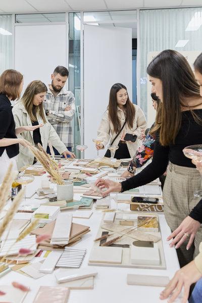 From warm neutrals to natural textures and thoughtful layout compositions, attendees experimented with tiles, cabinetry samples, fabric swatches from Japandi Estate, and finishes that capture the essence of Japandi: where Japanese elegance meets Scandinavian simplicity.