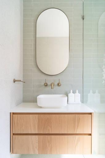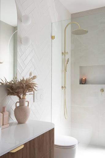 Vertical tiling draws the eye upward, making any space feel taller. There's something about those vertical lines that adds visual movement and creates a real sense of height, perfect when you're working with standard ceiling heights but want a bigger, more luxurious feeling. This direction is fantastic for feature walls, compact powder rooms where you want to maximise the sense of space, and behind vanities where you may want to create a statement that feels both practical and impressive.