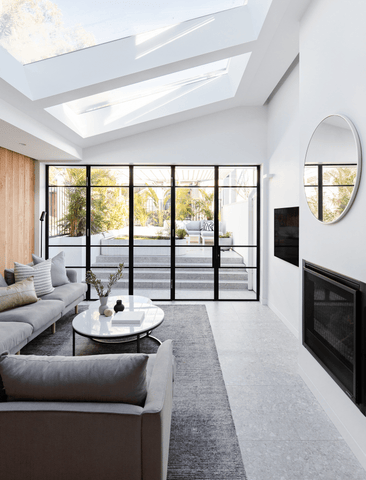 Another space-enhancing hack is using larger tiles throughout your living room. The bigger your tiles, the more spacious your room will appear! Look for tiles that are at least 600 x 600 mm if you can manage it. The reduced number of grout lines in your living room will instantly simplify the space. As an added bonus, you’ll also have fewer grout lines to clean – but bear in mind that larger tiles generally provide less slip resistance.