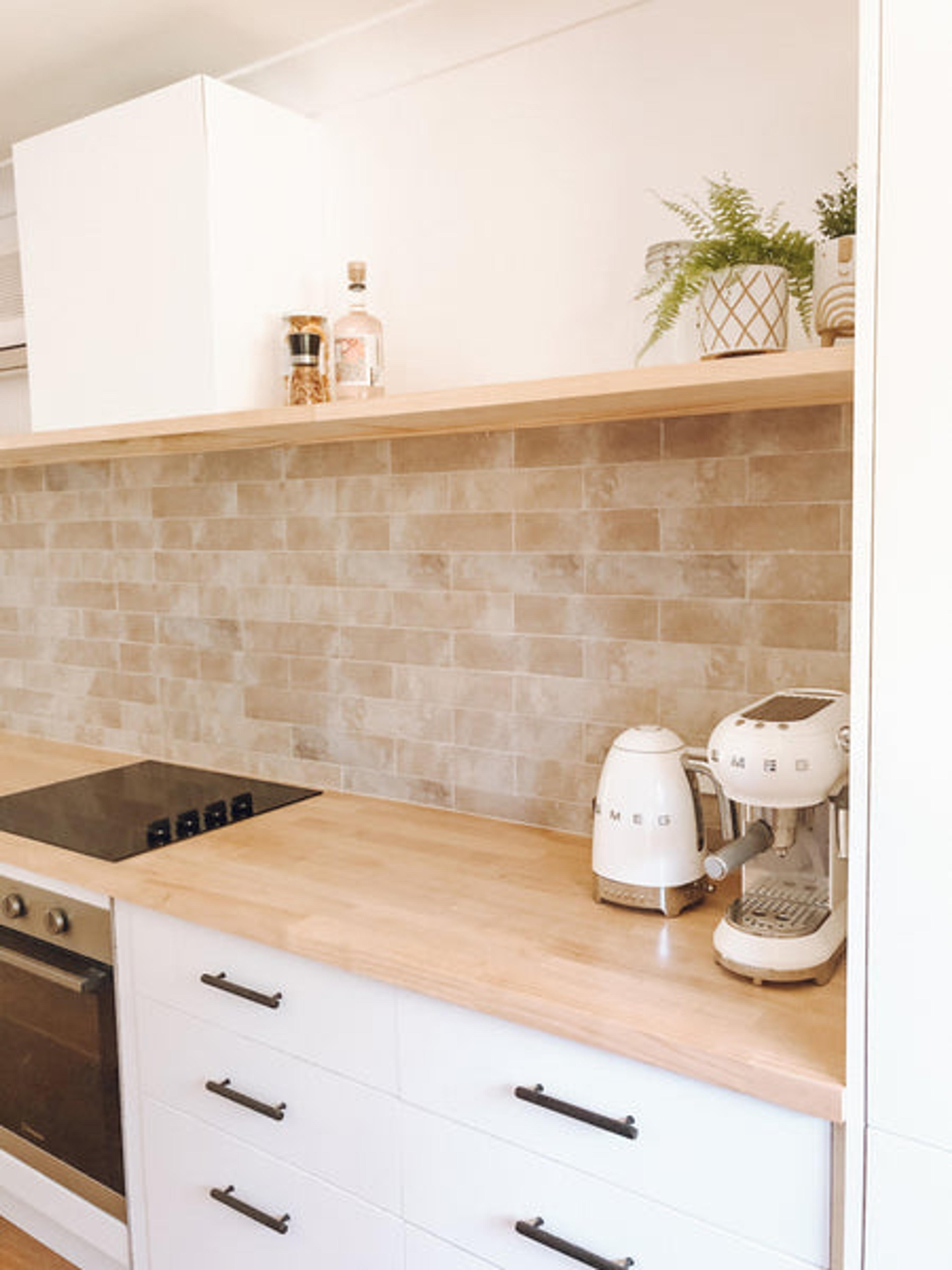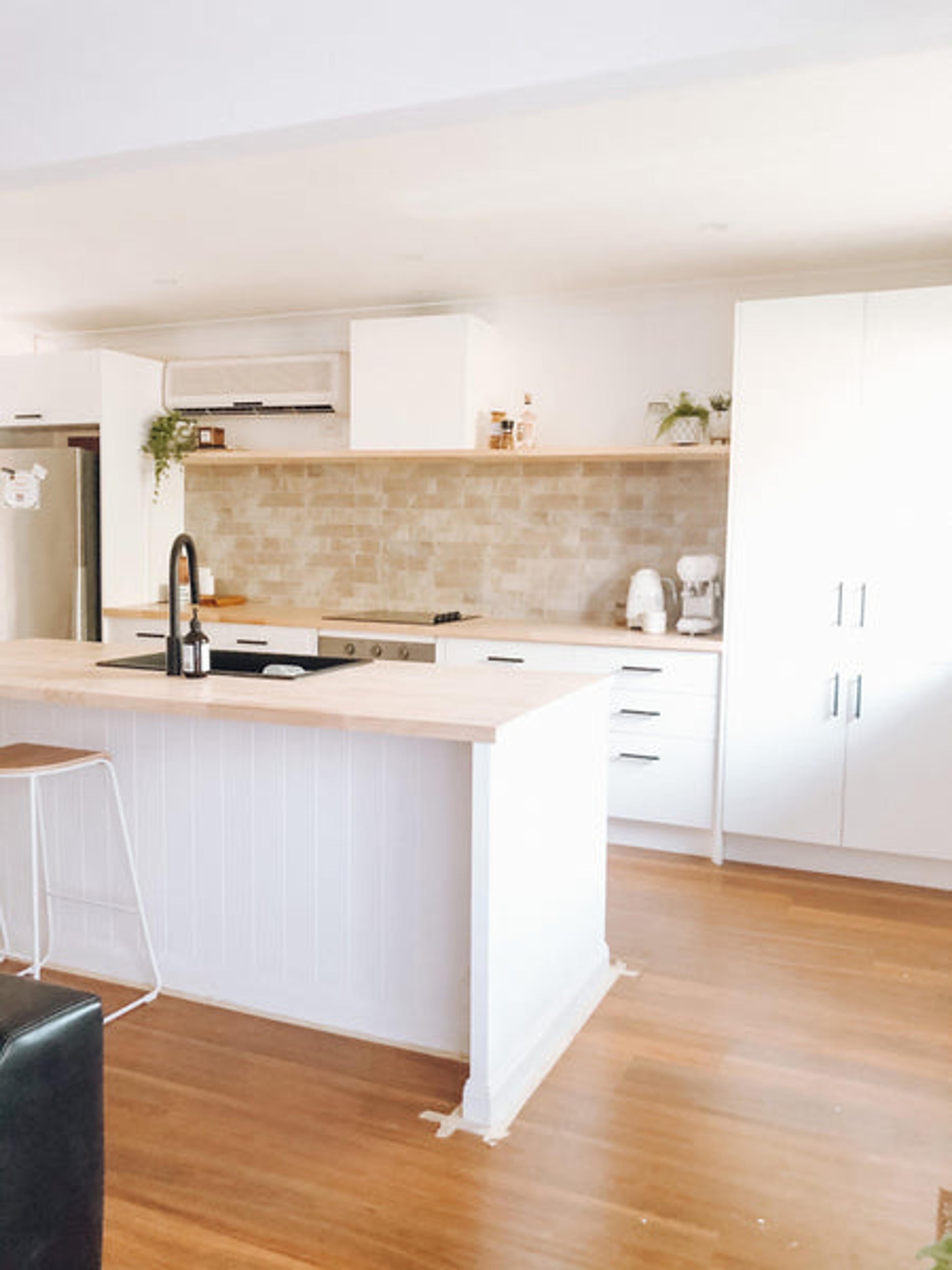 Jesse and Ben from Redlands QLD have been busy renovating their newly purchased 1980's brick home. Purchased as an investment property for the couple, they have decided to keep the design earthy and neutral to appeal to as many buyers as possible when they decide to sell. They revamped their kitchen using our Thirroul in bone as a splash back and now we're eagerly waiting to see what they come up with for their bathroom and laundry design!