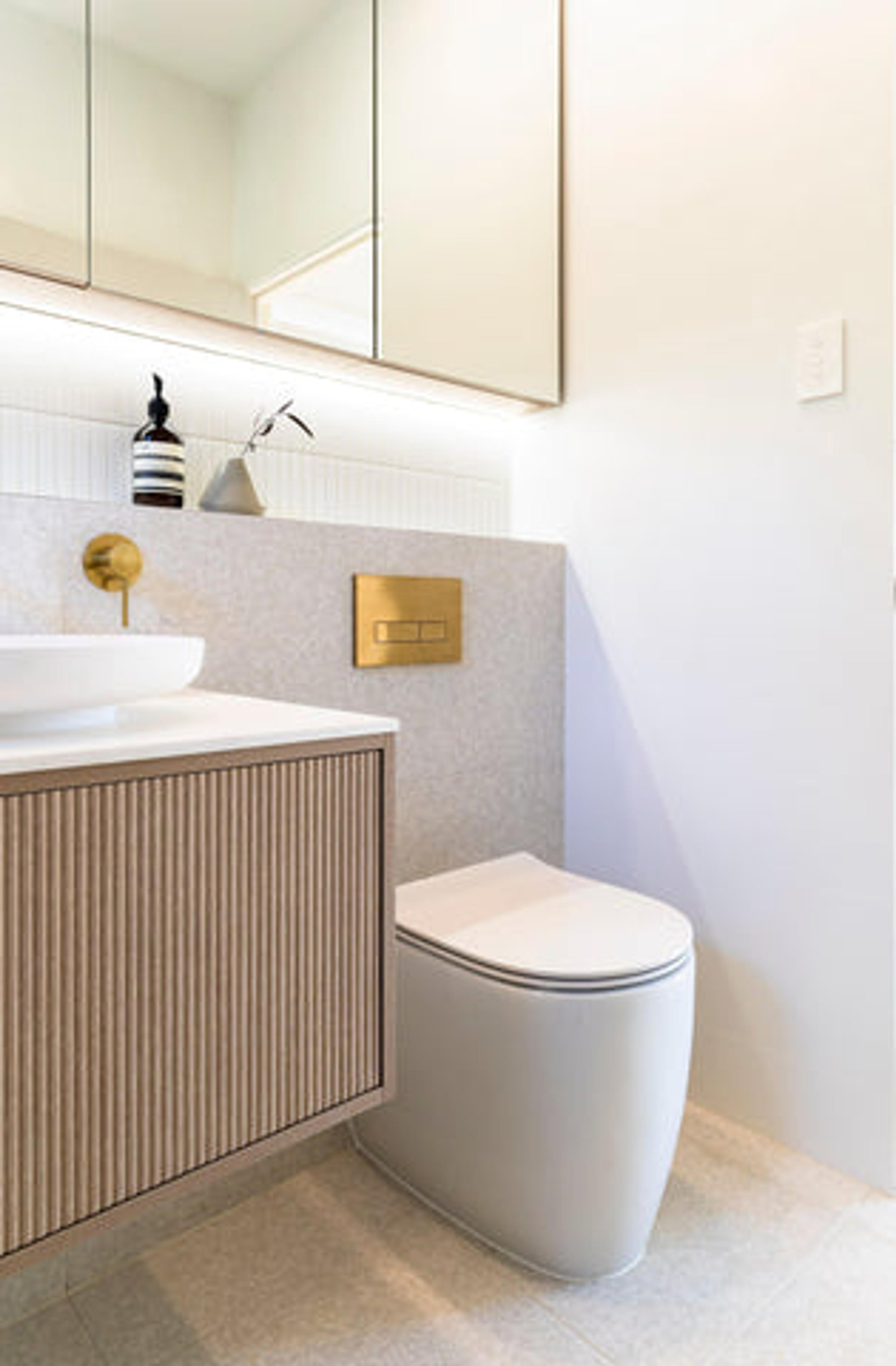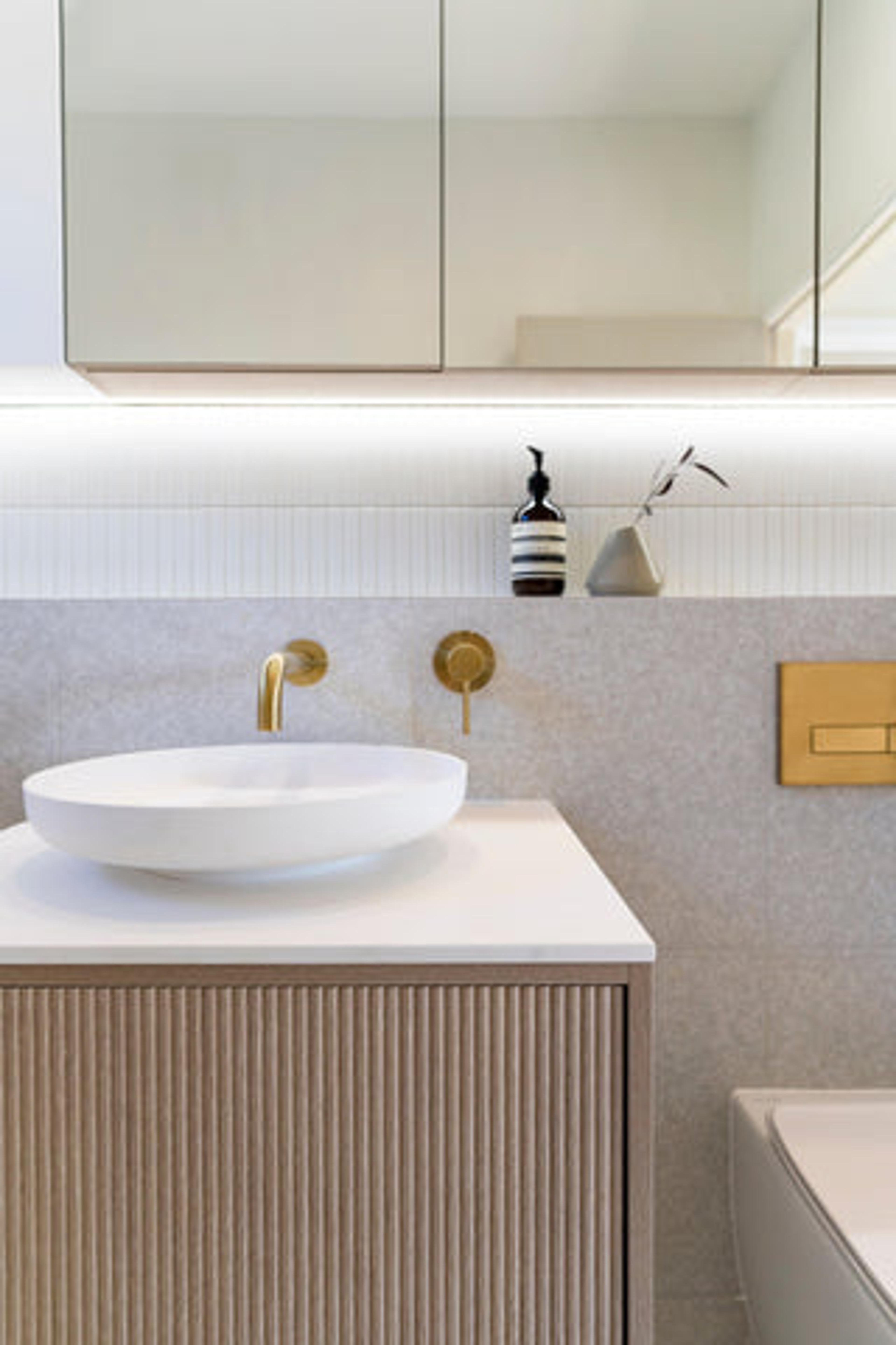 Check out Jono and Michelles bathroom transformation! From original 1960's to a warm modern bungalow in Sydneys South Coast. They used our Paddington white Terrazzo look tile paired with the Brunwsick matt white Kit Kat with warm brass tap ware and a stunning timber vanity from ADP to bring it all together!