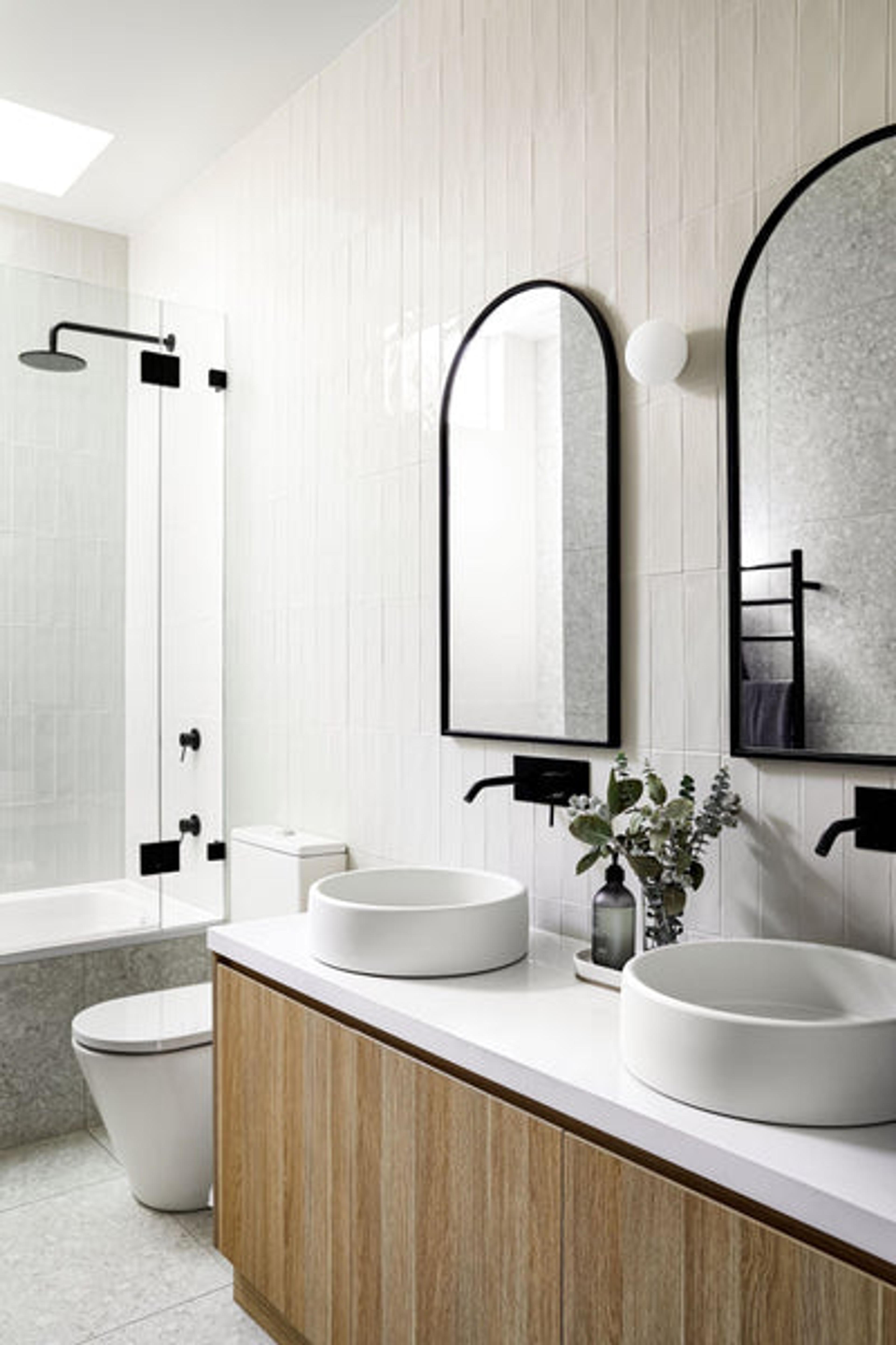I love magazines and over the years I'd collected a lot of clippings of homes and interiors we both loved, so we had a very clear style and look we were hoping to achieve. When it came time to source the finishes and selections, I found Instagram and the tag function to be an amazing resource. It was so easy to tap on an image and identify the supplier then click through to the profile for stockists and further details. The kids bathroom mirrors are a great example of this, I saw them on the TileCloud stories in the Redfern House bathroom make-over, I clicked through and bought them straight away!