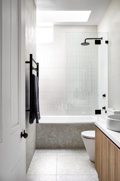 Kristy and Kieren took on a full home renovation and an expansion of the home to become more suitable for their growing family. After lengthy wait for DA approval and an 8 month build, this stunning Victorian era house has transformed into a show stopper! Recently featured in Inside Out Magazine February 2021 issue, peek at our Stirling White and Newport Subways in their new family bathroom, laundry and ensuite!