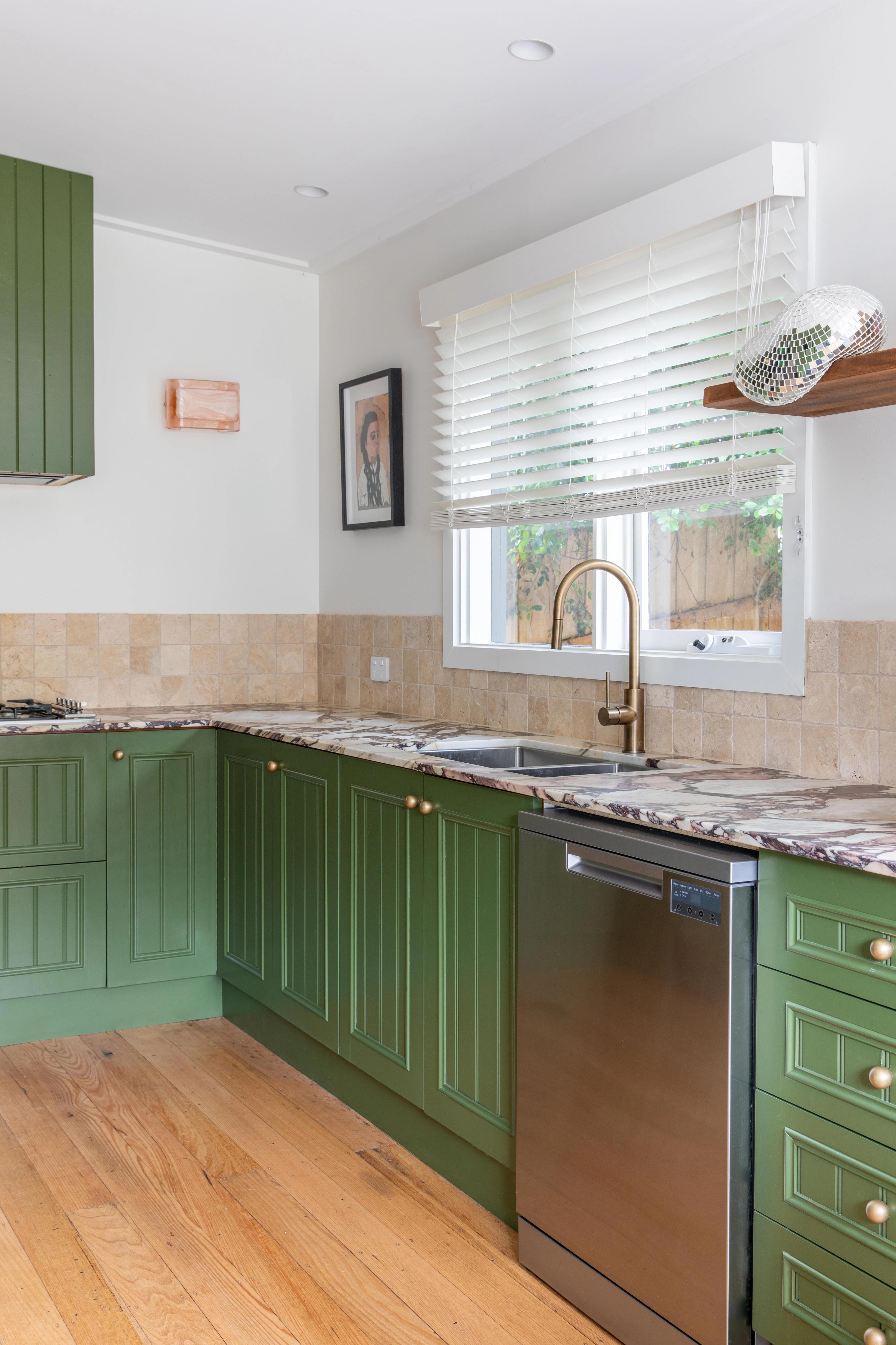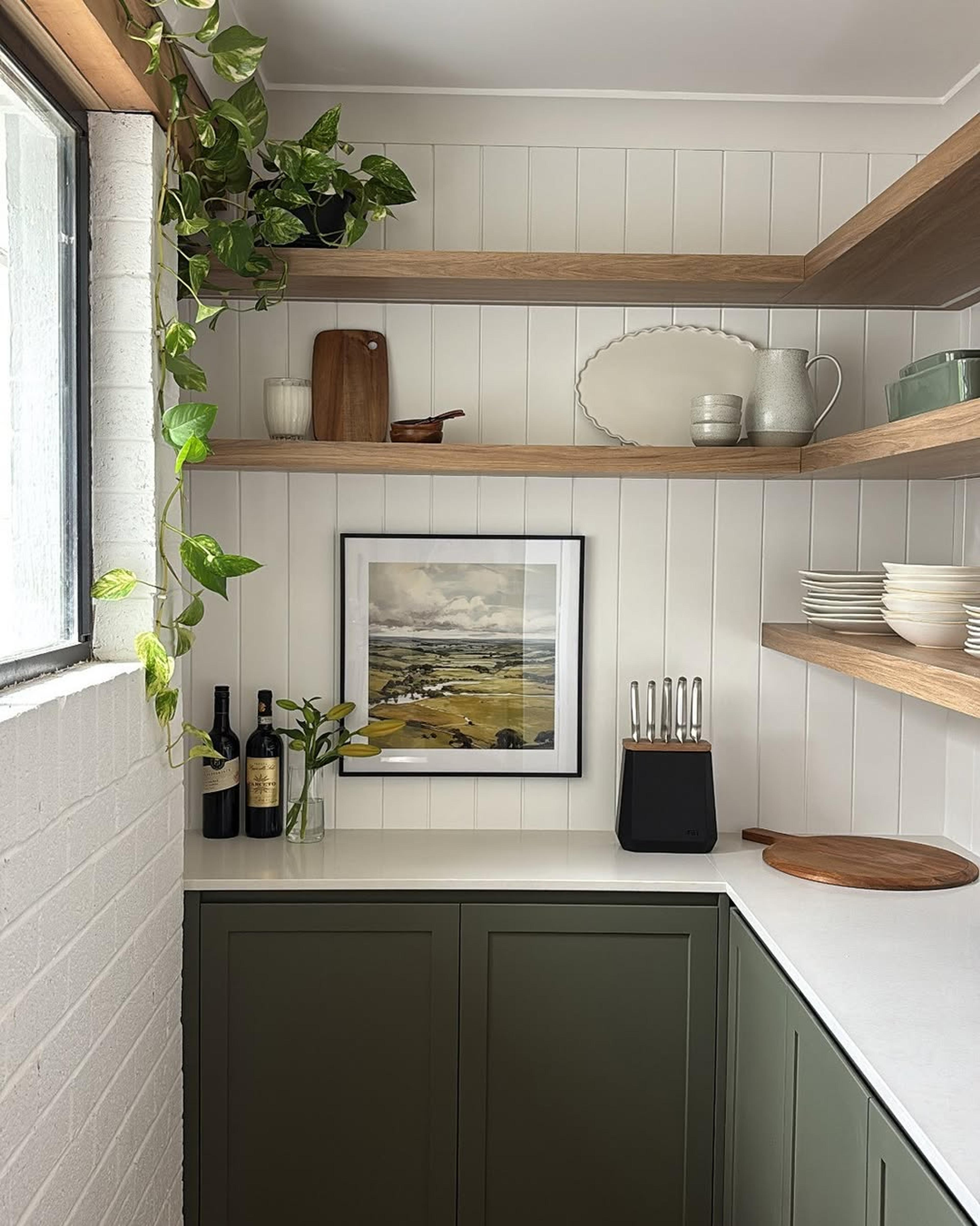 When creating this style of kitchen, think organic textures and greenery mixed in with modern elements. You could blend timber and stone accents with earthy hues for a grounded but put-together feel. Whether that means using timber cabinetry, forest green tiling or stone countertops, it’s about bringing the outdoors in.