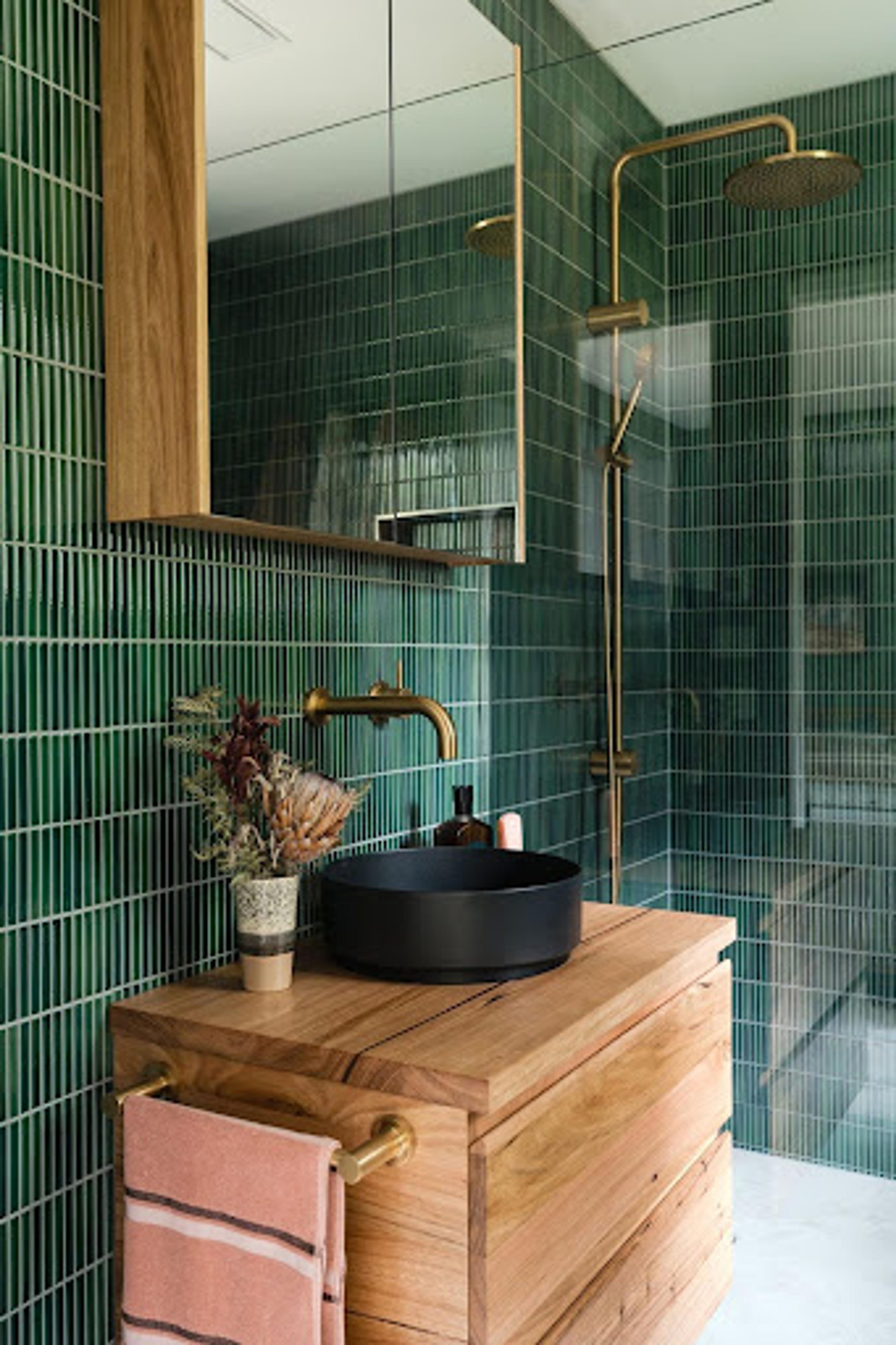 Bold interior design succeeds when you resist the urge to make everything a statement. Instead, choose one key area (ahem, may we perhaps suggest incorporating feature tiles), consider a colourful splashback, a bold shower wall, or an eye-catching accent wall. Here’s some bathroom feature wall tile inspo for those looking for some visual inspiration.