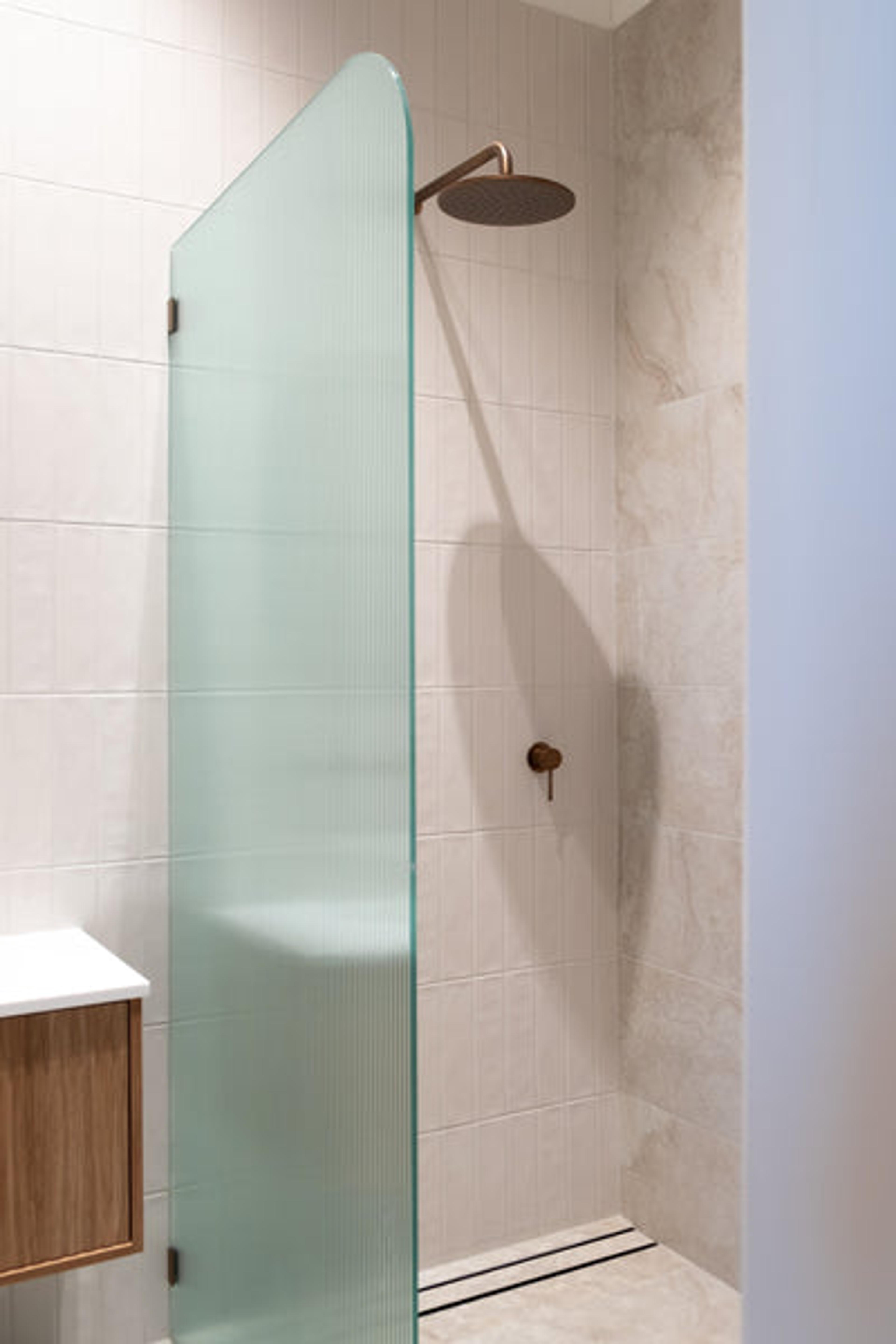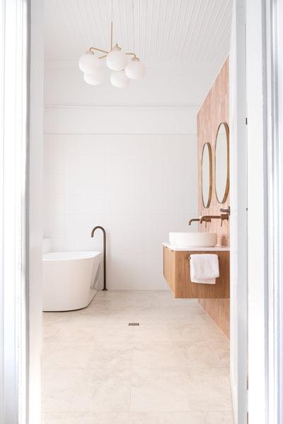 For the bathroom floors, the Stantons went for Byron Travertine Look Ivory Matte tiles. Topping this off was Antique Brass tapware to complete the style. All of these style choices flowed naturally from the refreshed bedroom aesthetic that was designed to be inviting.