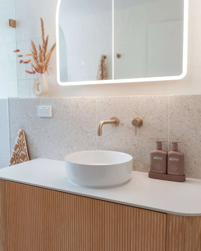 When it came to selecting materials, Starr focused on creating a cohesive palette rather than making individual pieces stand out. The tiles set the tone early, bringing warmth and texture into the space, while the tapware was chosen to complement those finishes and tie everything together.