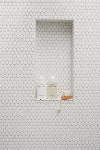A niche is a common term used to describe a recessed storage space in the wall servicing your shower or bath used to store shampoo bottles, soap etc. A niche requires a little bit more time to plan to make sure you have adequate space for all your essentials. You can have multiple niches in a space which can be handy for larger households!
