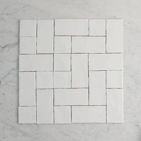 Basketweave pattern tiles create an interwoven look resembling woven fabric. You can change the tiles to rest differently on a diagonal plane or tilt the design so it runs parallel, focusing on the lines between each row of tiles.