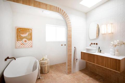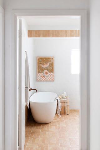 You long for the Santorini summer. Picture textured walls, natural tones, aged metals with a touch a colour. You’re not afraid of mixing textures and want as much natural light in the room as possible. Maybe even an outdoor shower?