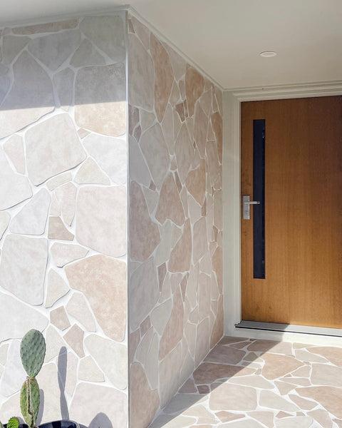 We teamed up with Three Birds Renovation on House 13, where they used our Paddington Check Pattern Terrazzo tiles to completely change this front entry. They took a plain space and made it feel like a high-end resort.