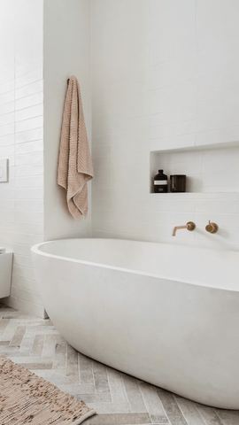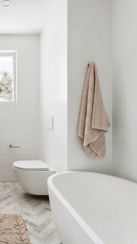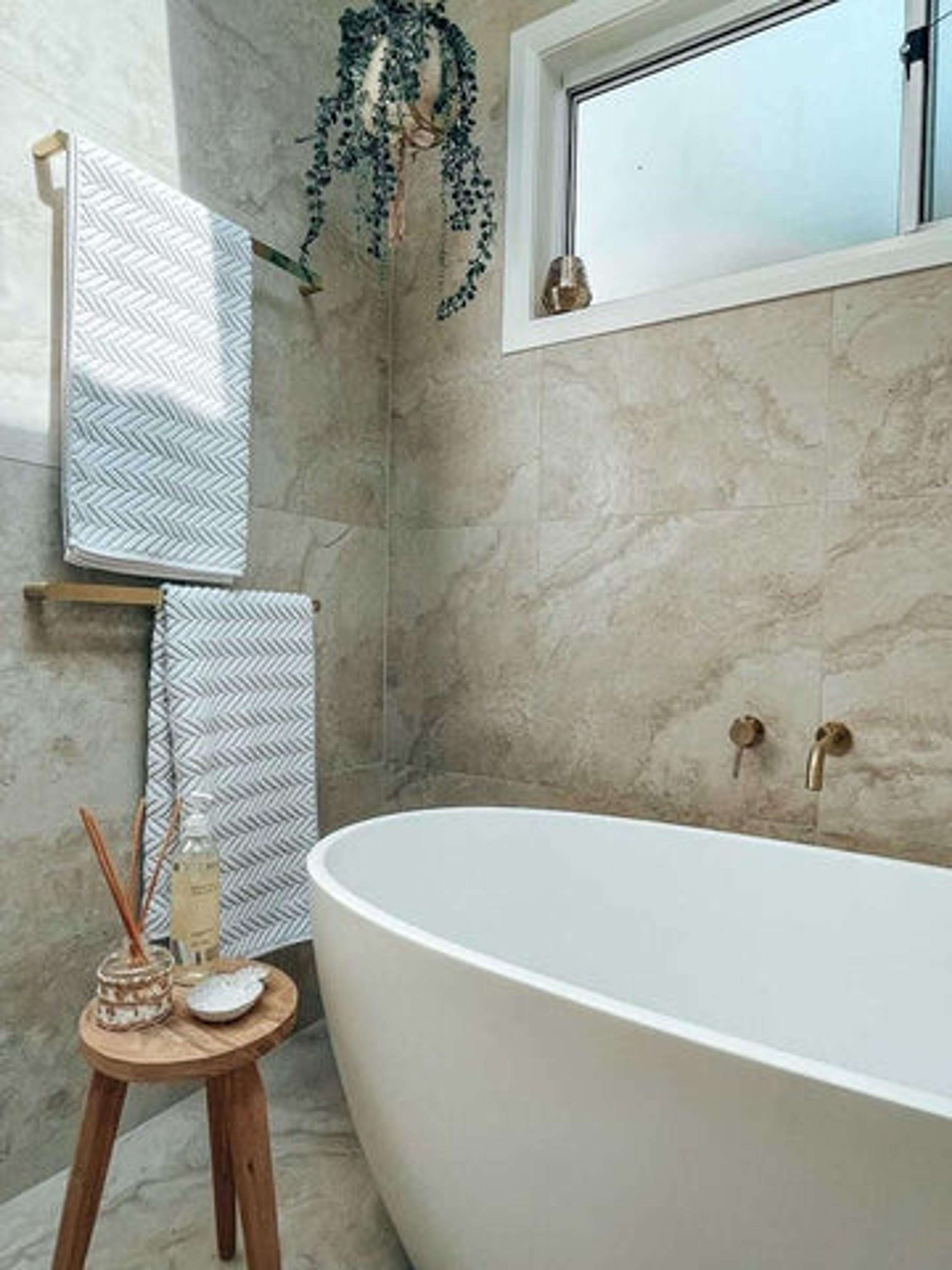 Using our Byron in ivory & Thirroul subway in bone with silver grey grout.