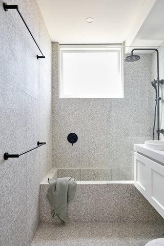 Using our Stirling in grey with manhattan grout and Coogee kit kat in white with white grout.