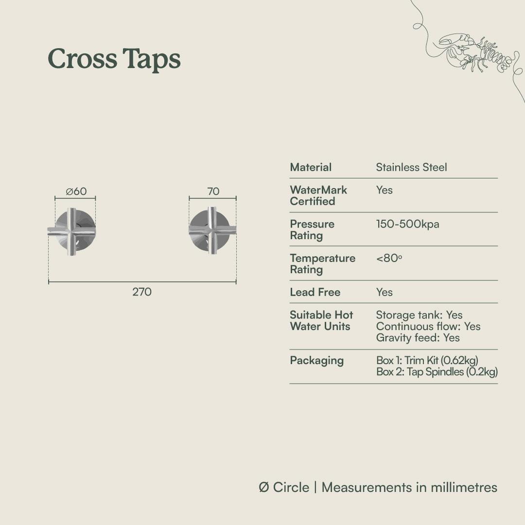 The Sydney Wall Spout and Cross Taps in Antique Brass brings a warm, sculptural moment to the basin or bath wall. The curved wall spout and slim cross taps in Antique Brass over stainless steel feel calm against stone and textured tiles. This three piece tap set adds character while keeping lines clean.