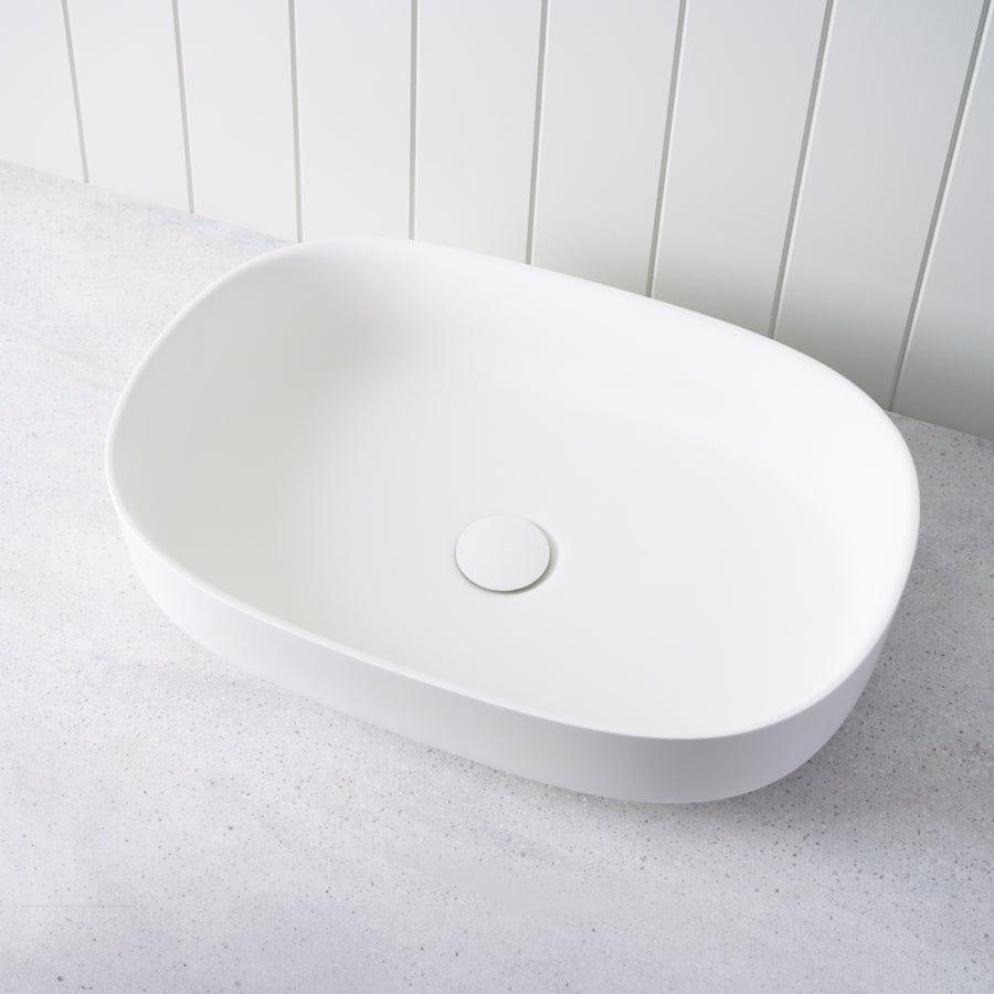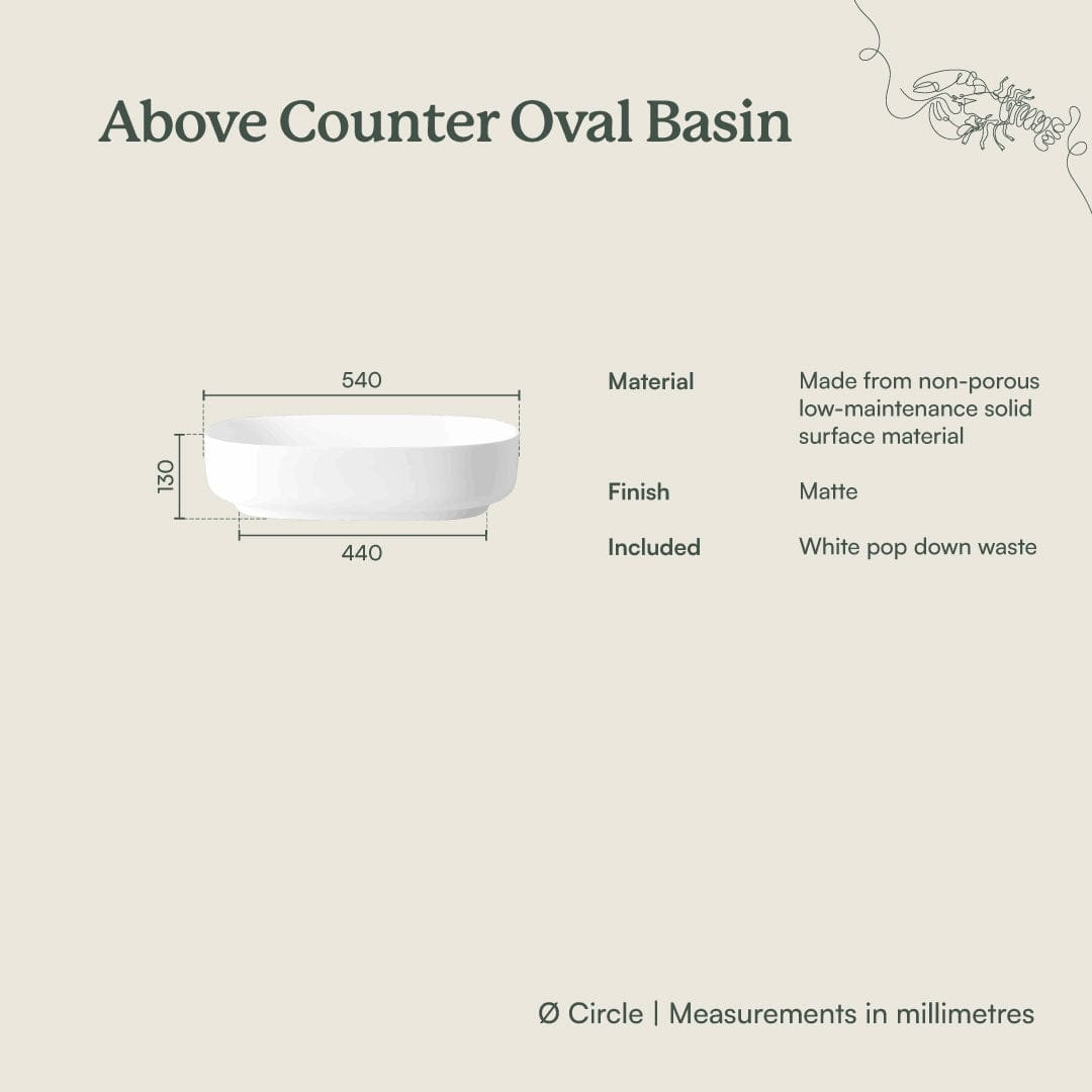The Above Counter Oval Basin in Matte White brings a soft, sculptural moment to the vanity. This above counter basin features a gently curved oval form and smooth matte finish that pairs effortlessly with stone, timber and brass tapware. For those seeking an alternative to sharp rectangular basins, its raised sides help minimise splashes while keeping the bathroom feeling calm.
