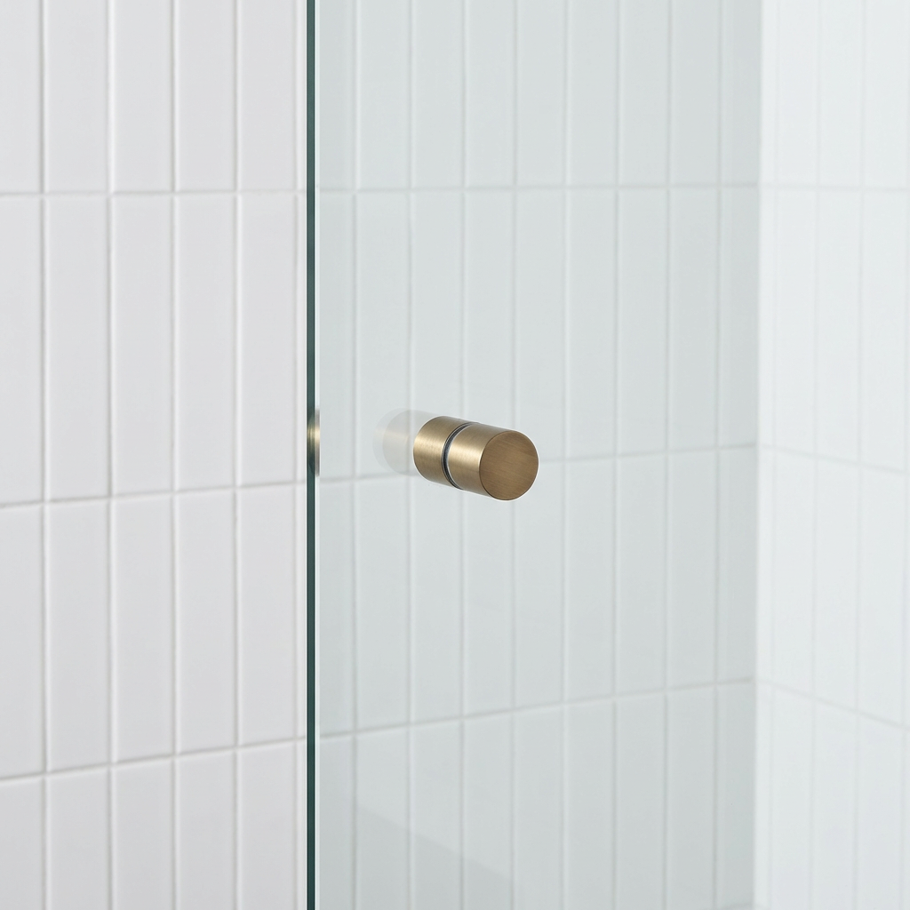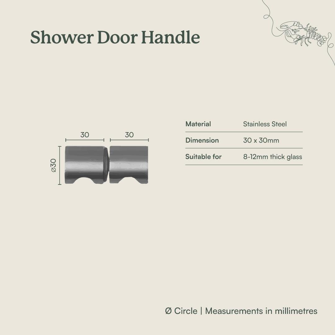 The Shower Door Handle in Antique Brass adds a warm, tailored detail to a frameless glass shower. Two back to back pieces with soft gripping divots feel secure in the hand while keeping the profile minimal. Plastic washers protect the glass, creating a refined shower door handle that looks at home with brass tapware and light tiles.