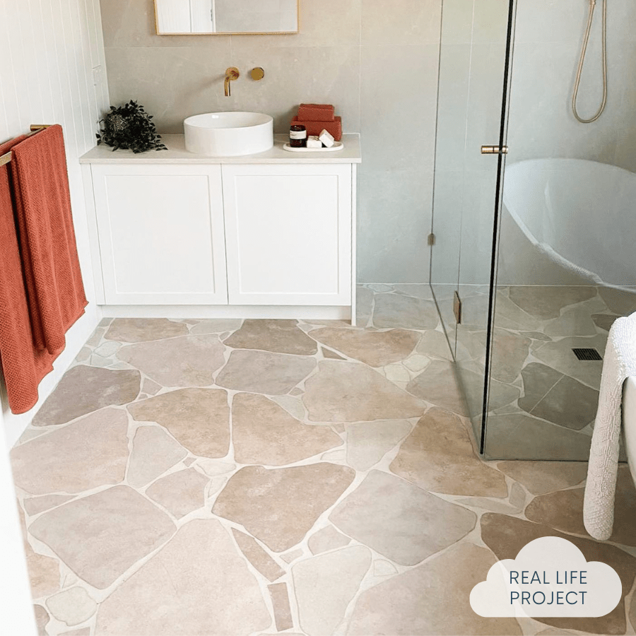 The Clovelly Stone Look Crazy Paving Tile brings a natural stone aesthetic to your home, offering a textural and grounded feel. Perfect for creating a warm and inviting atmosphere, these tiles are suitable for all areas of the home: indoor and outdoor. An effortless way to refresh your space with the timeless appeal of natural stone tiles.