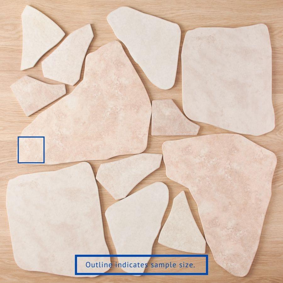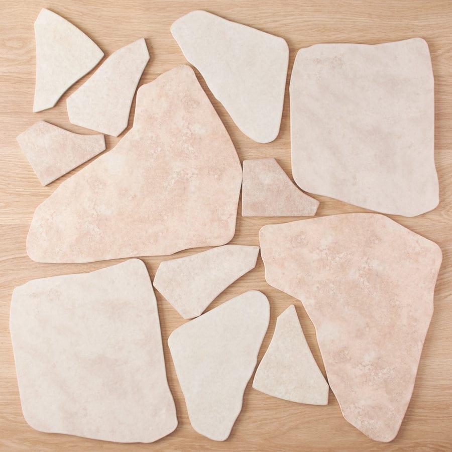 This tile is designed with a cushion edge specifically for use with wider grout joints. With 6 different shapes in each set, gone are the days of breaking tiles and sharp edges. The tiles are designed with colour variation to mimic the look of natural stone.