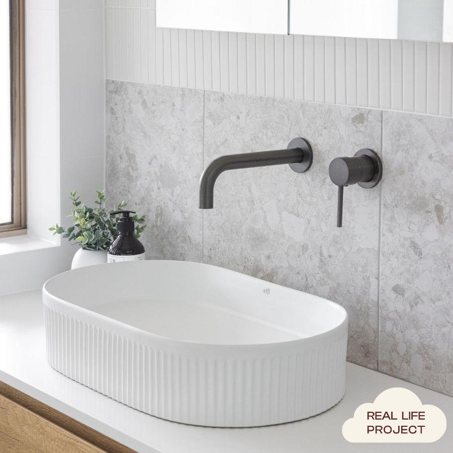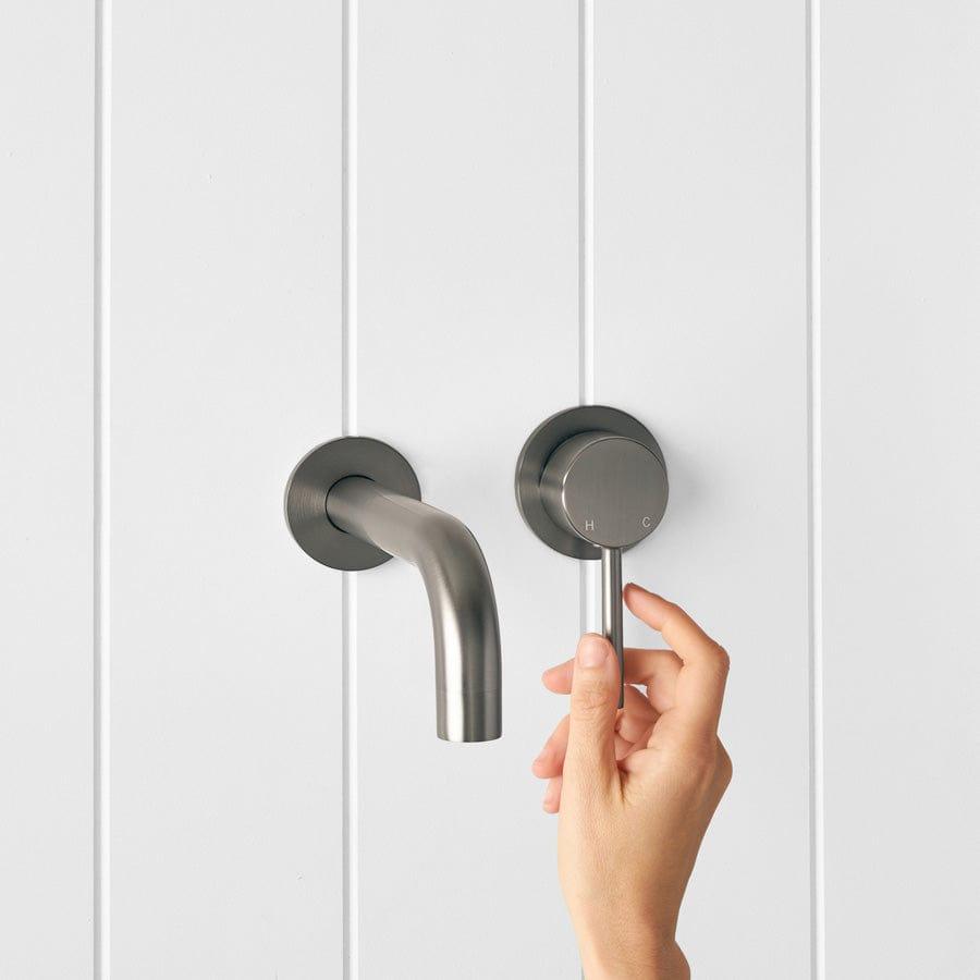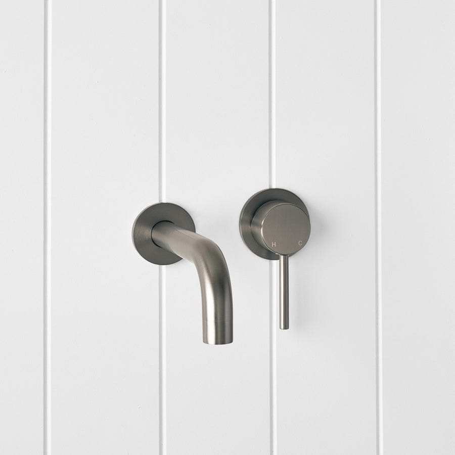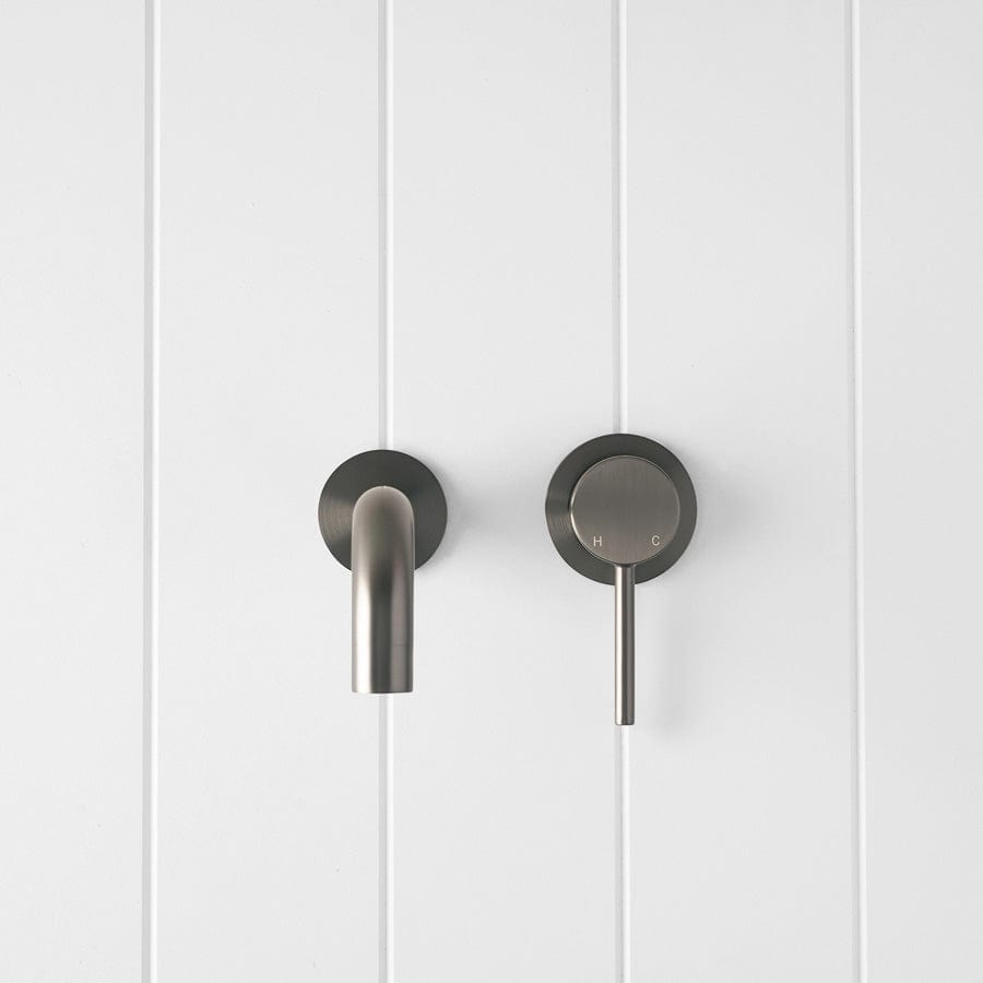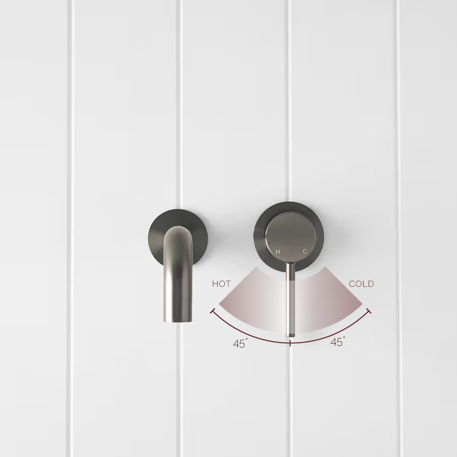 The Sydney Wall Mixer in Gunmetal brings a grounded, contemporary note to the bathroom wall. The deep Gunmetal finish over stainless steel contrasts beautifully with pale tiles and stone, while the simple round form keeps the look quiet. It offers smooth, precise control for both shower and basin sets.