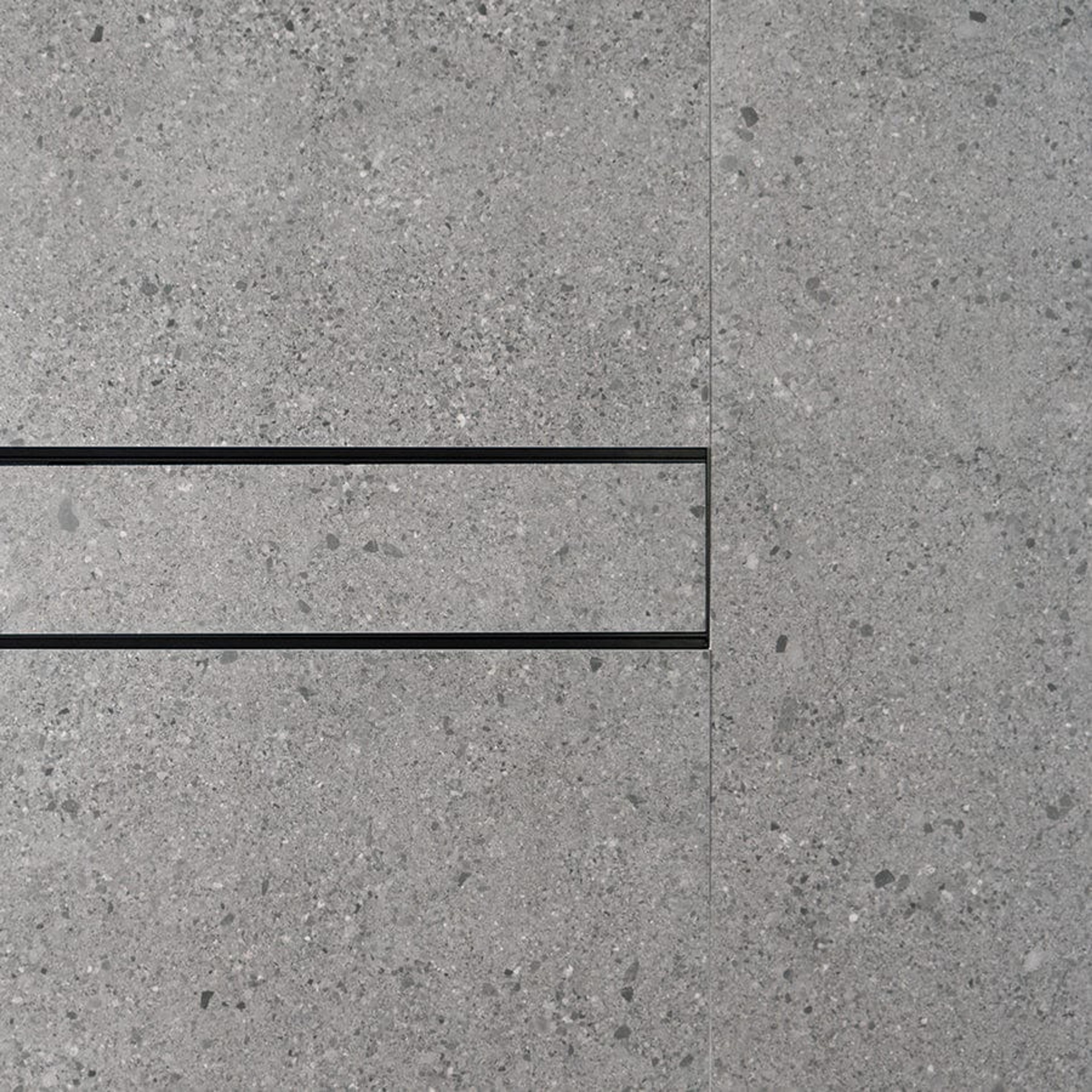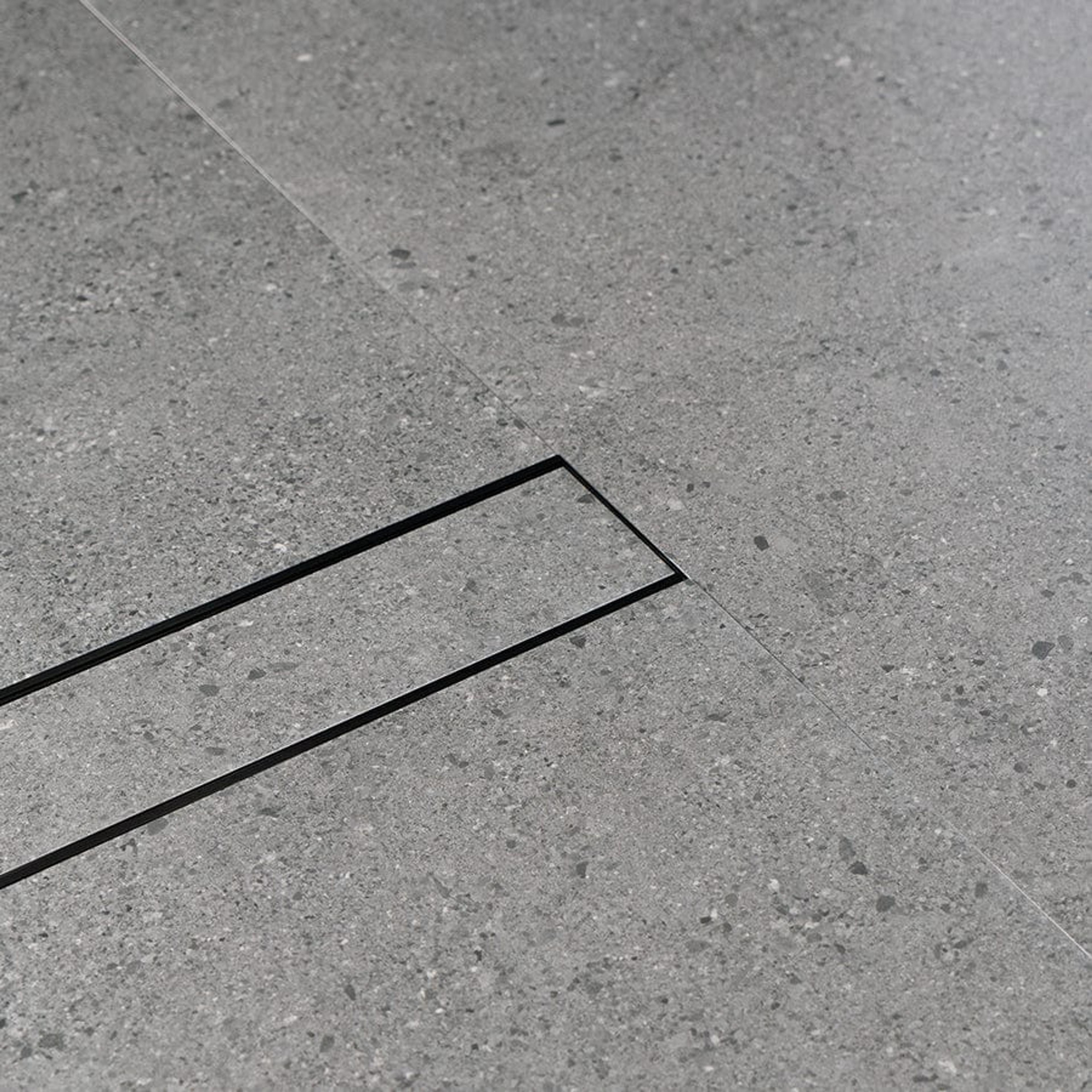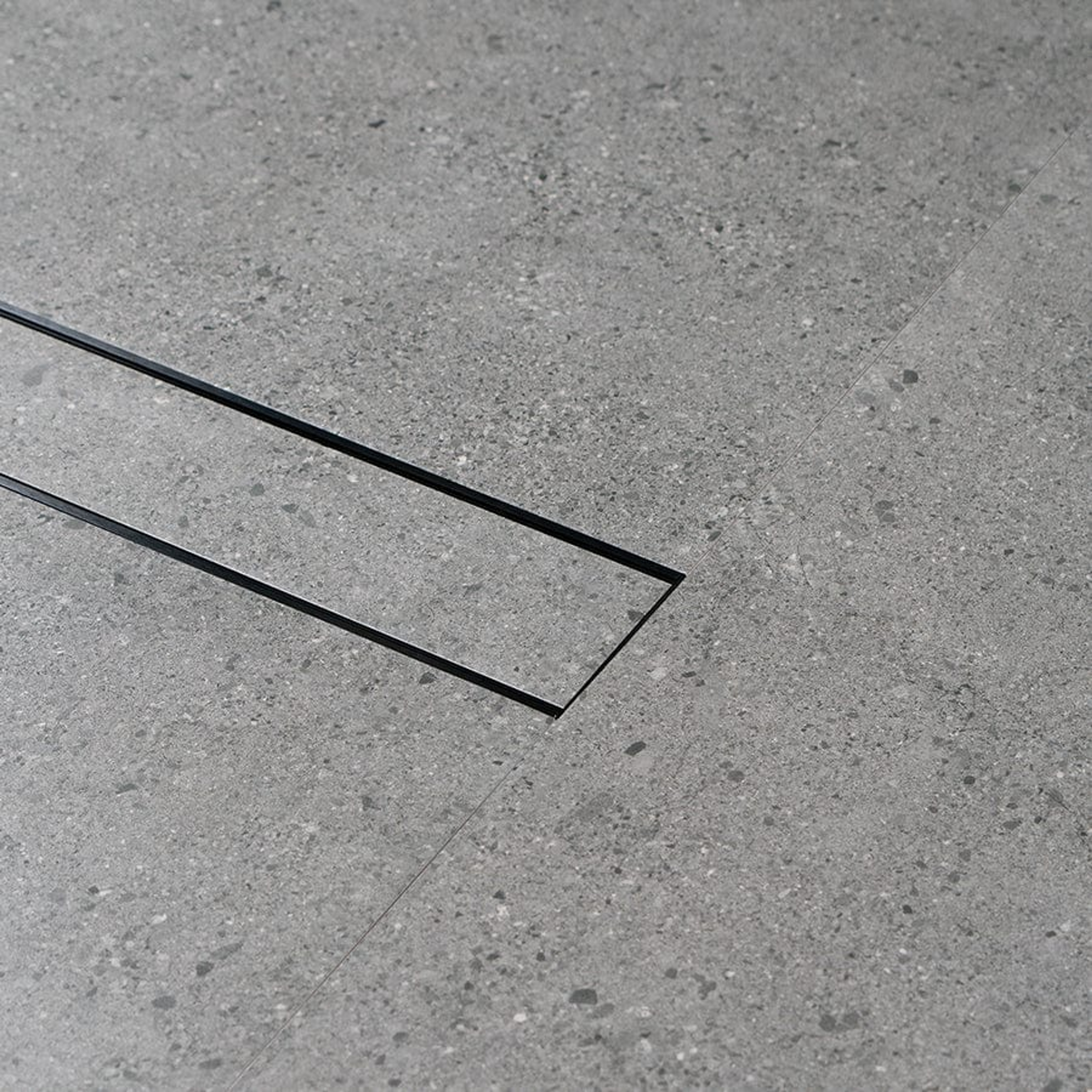 Aluminium Tile Insert Strip Drain - Cut to size - 2M Matte Black. Create a seamless, modern finish in your bathroom or wet area with this 2-metre Aluminium Floor Drain. Designed to sit flush with your floor tiles, this slimline strip drain provides efficient water flow while maintaining a clean, minimalist appearance.