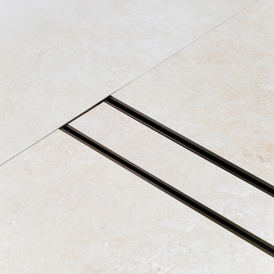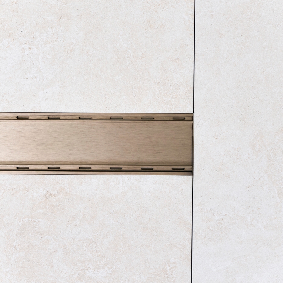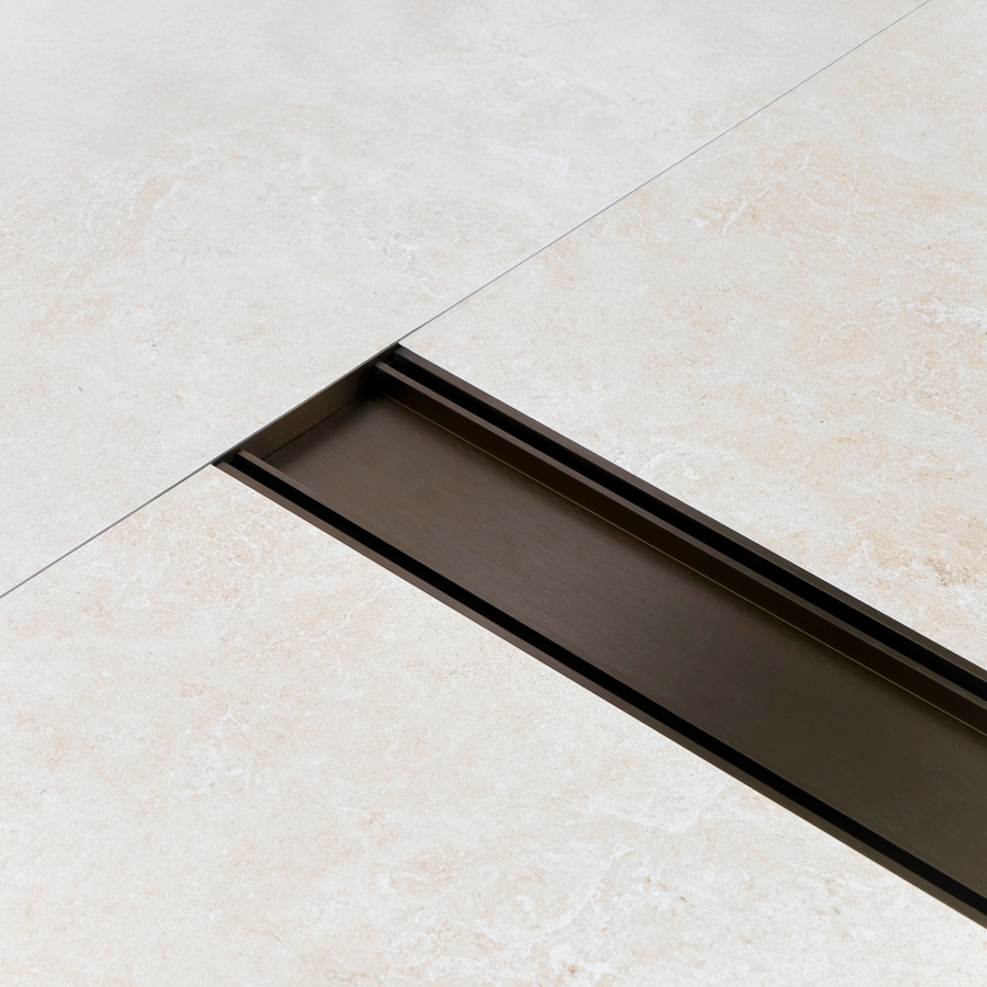 The Aluminium Floor Drain in Antique Brass (1M) combines functionality with a modern design, making it a reliable choice for any bathroom. This strip drain is designed to sit in the drain giving a perfect flush appearance with your floor, ensuring efficient water management while adding a touch of refined style. Its durable construction and simple installation make it a practical solution for long-lasting performance.