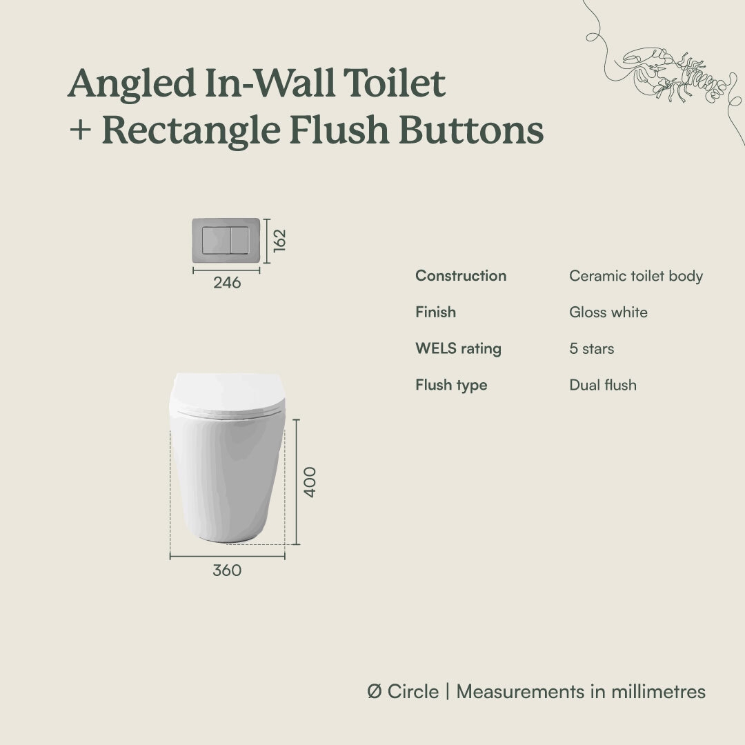 | Flush Buttons | Flush Buttons only compatible with Yabby toilet cistern and are not sold separately. Dual flush |