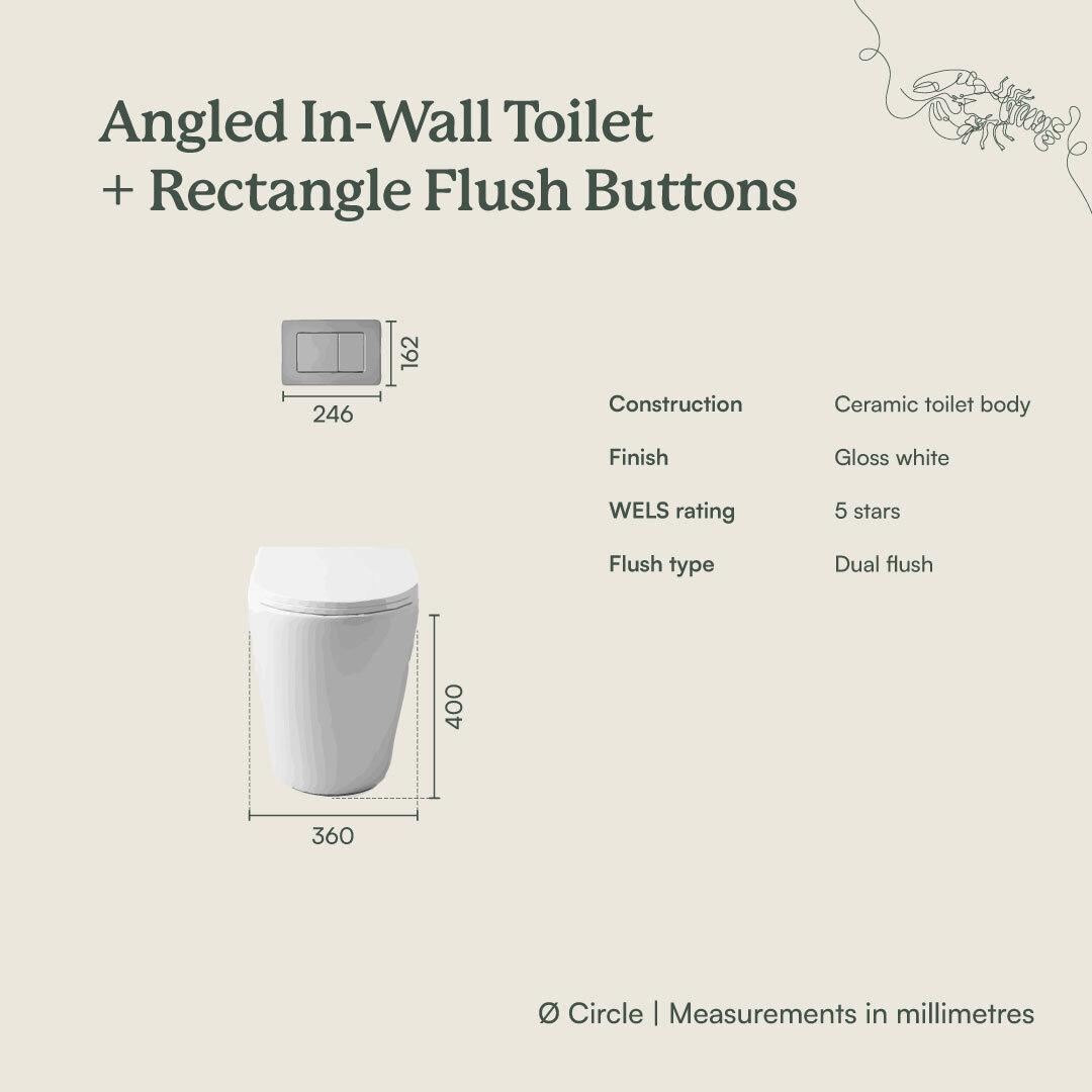 The Angled In-Wall Toilet With Rectangle Brushed Brass Buttons seamlessly combines modern design with practical functionality. Its in-wall installation offers a sleek look while the brushed brass buttons add a touch of refinement. Built for reliability, this toilet bundle ensures long-lasting performance and ease of use in any bathroom setting.