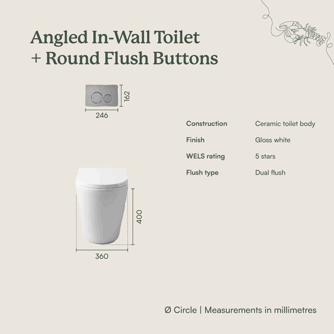 | Flush Buttons | Flush Buttons only compatible with Yabby toilet cistern and are not sold separately. Dual flush |