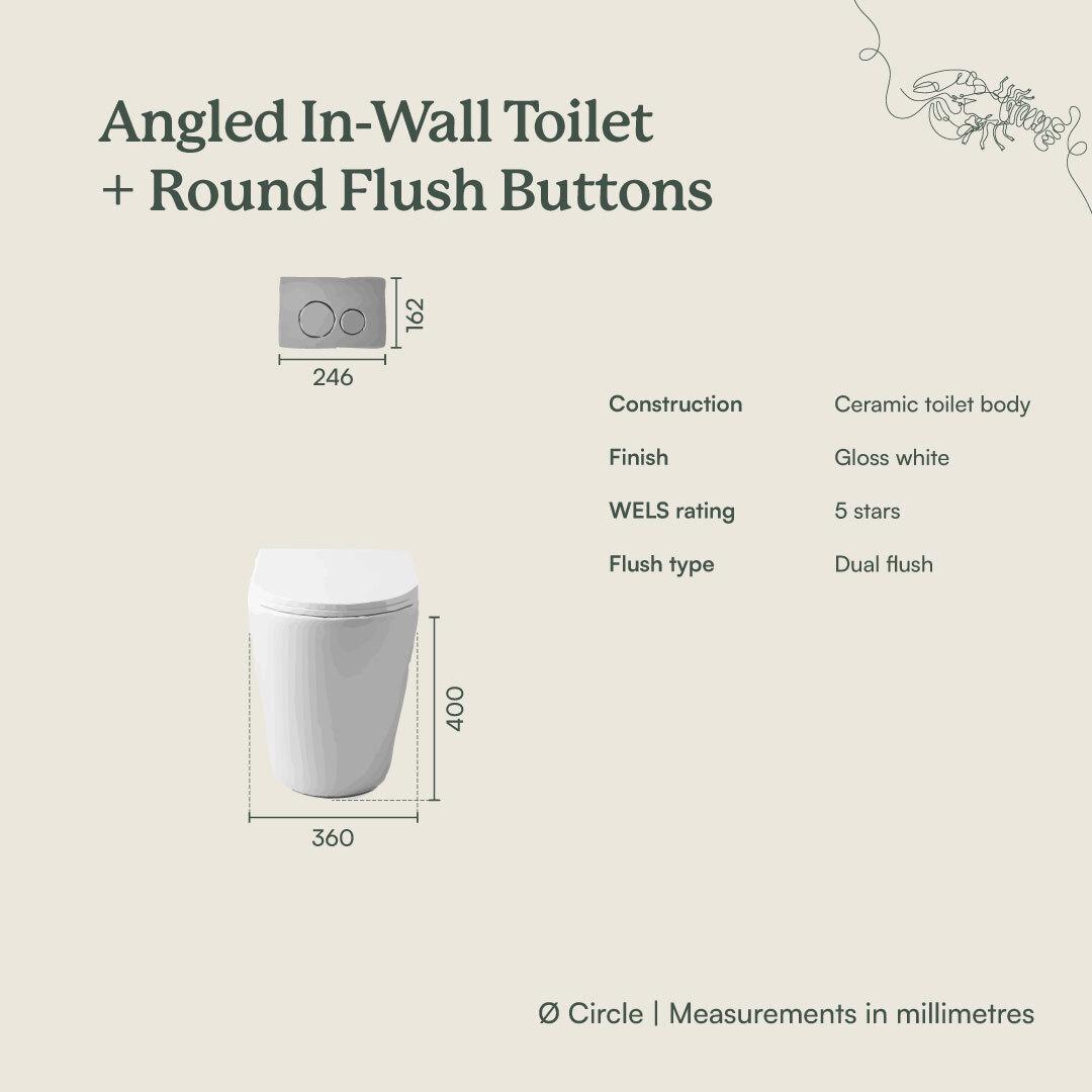 The Angled In-Wall Toilet With Round Warm Brushed Nickel Buttons combines modern design with reliable functionality, making it a standout in any bathroom. Its warm brushed nickel buttons add a touch of refinement, while the in-wall installation ensures a sleek and uncluttered look. Built for durability and ease of use, this toilet bundle promises long-term performance and a seamless fit into your space.