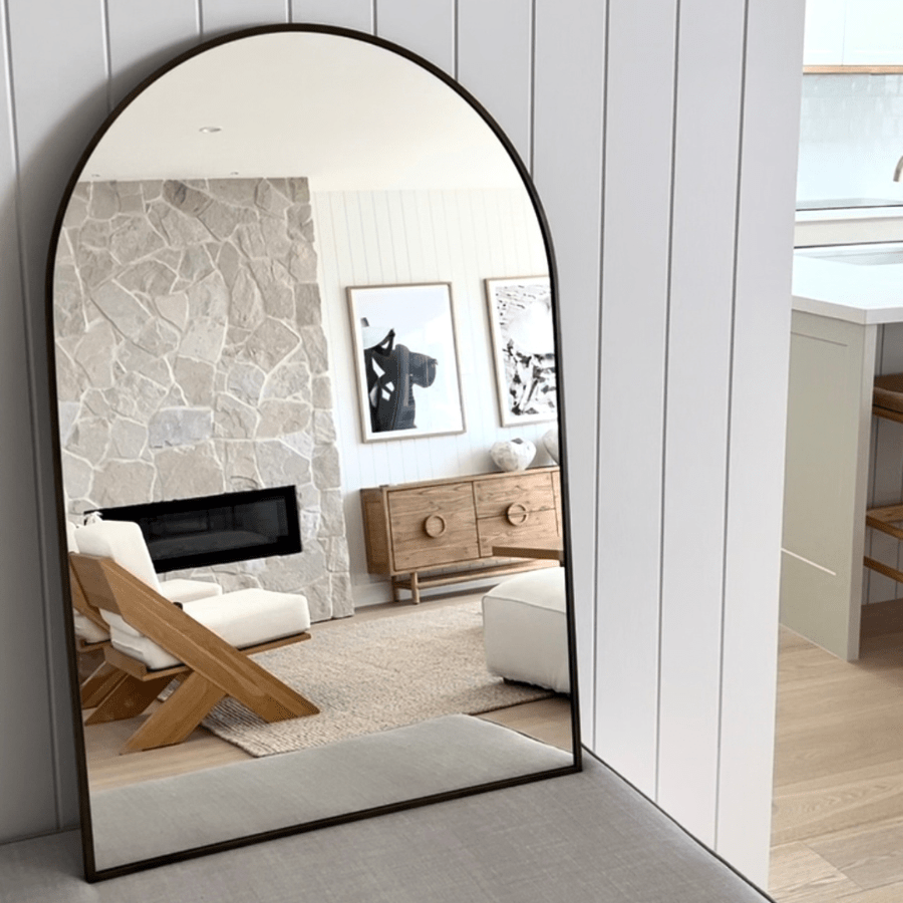 The Arch Mirror in Antique Brass brings a warm, refined touch to any room of your home. Its elegant arch design complements any wall, creating a calm and inviting atmosphere. Perfect for enhancing the natural light in your space, this wall mirror is a stylish addition to your home. This mirror is also suitable for bathrooms.