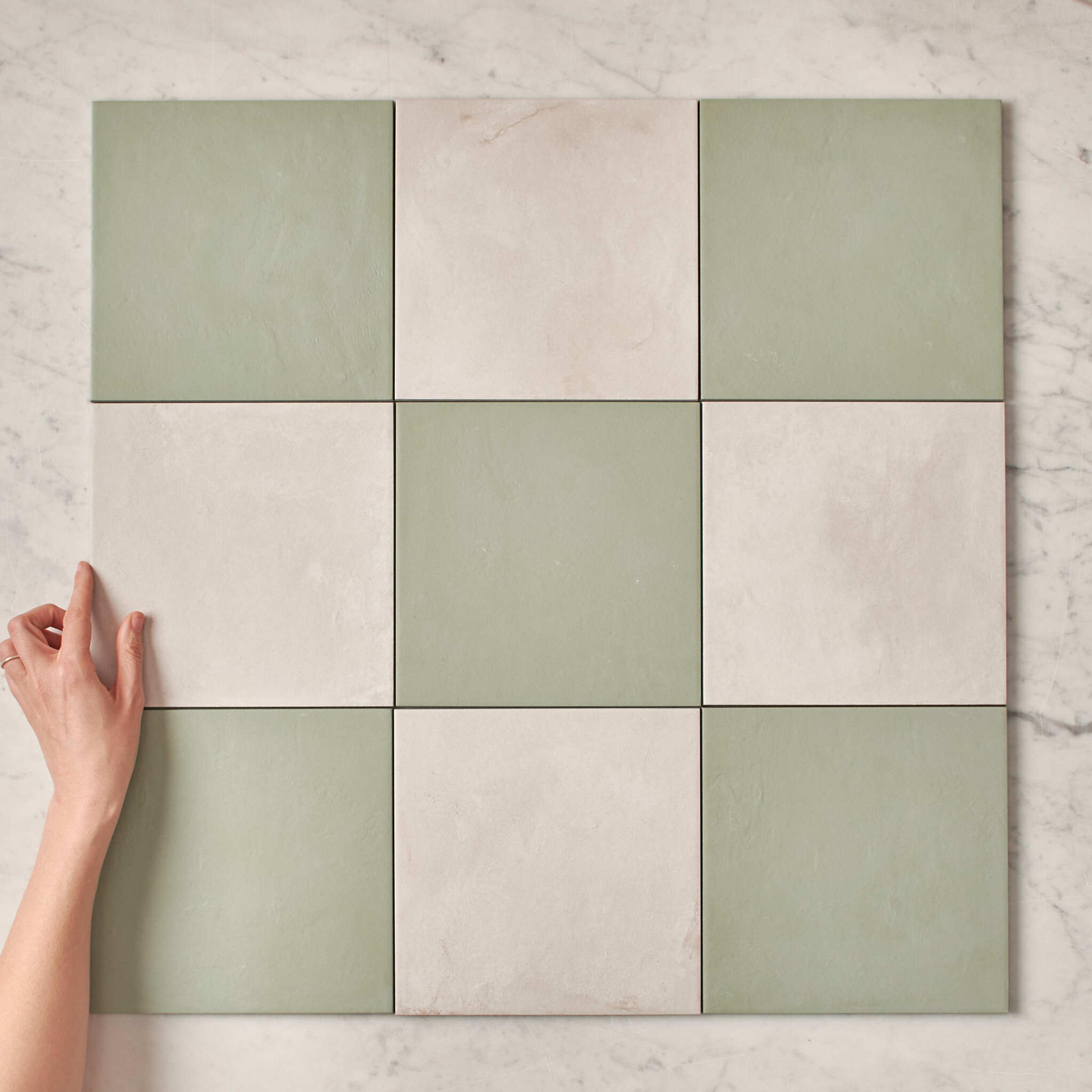 Bronte Checkerboard Sage & White Tile