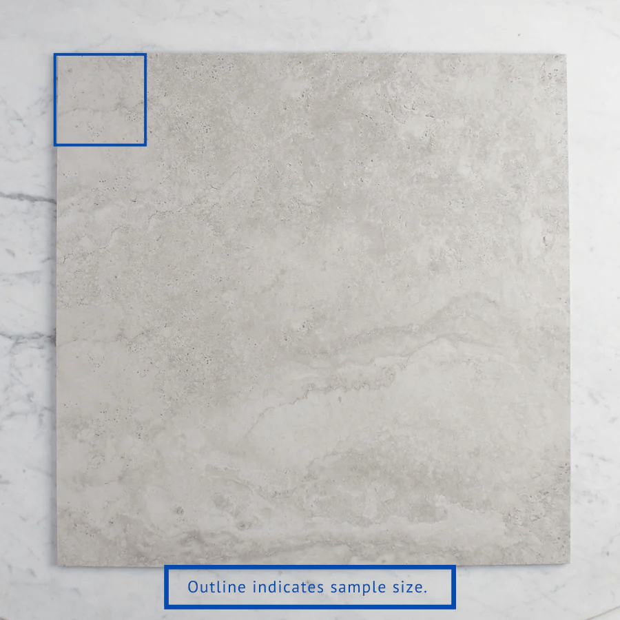 Elevate your space with our Byron Travertine Look Grey Matte Sample. Its 9.5mm thickness and rectified edges provide a sleek and modern look, while its P3 slip rating ensures safety. Made of porcelain, it's easy to maintain and suitable for both floors and walls. Enjoy style and convenience with this versatile tile.