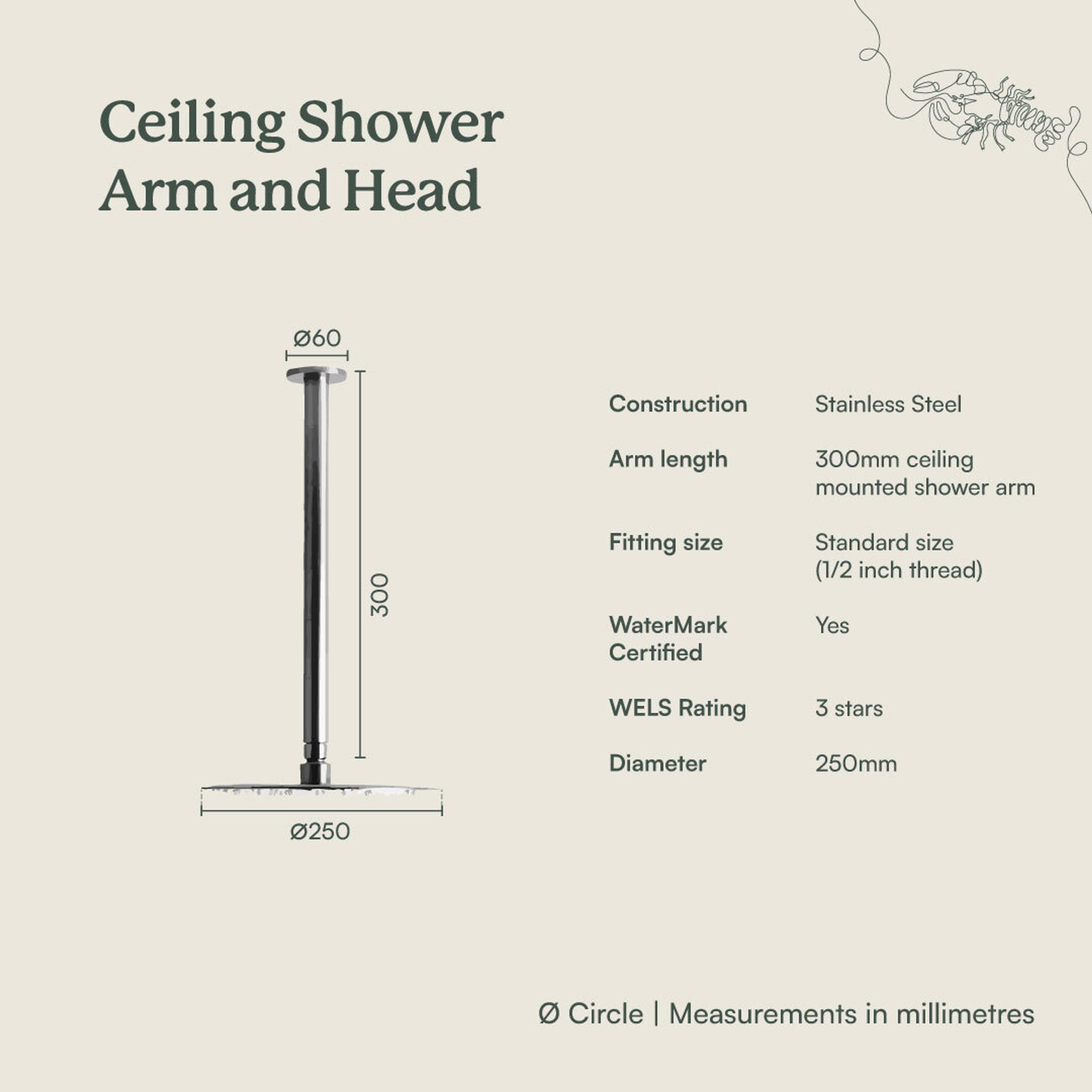 | Arm Length | 300mm - ceiling mounted shower arm |