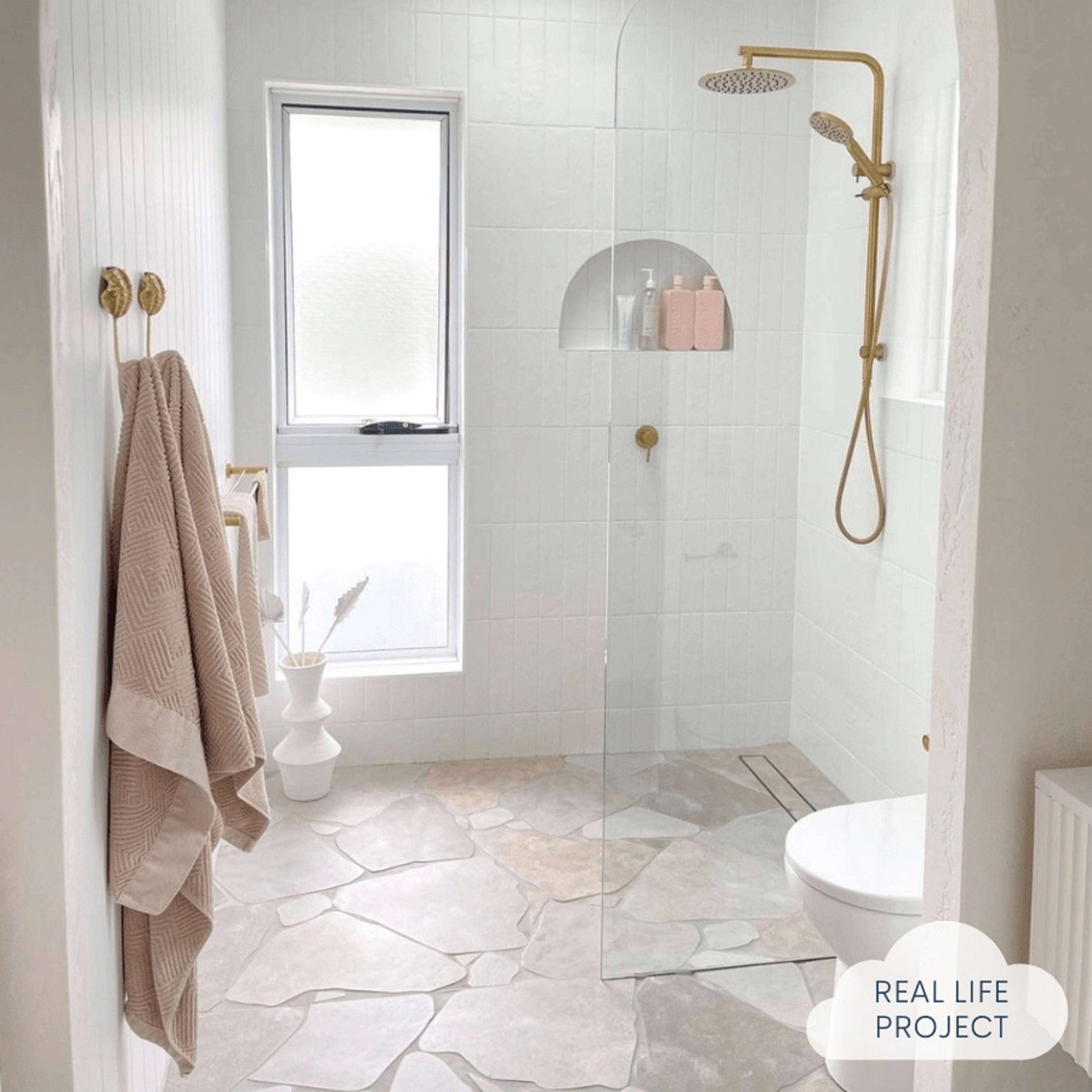 The Clovelly Stone Look Crazy Paving Tile brings a natural stone aesthetic to your home, offering a textural and grounded feel. Perfect for creating a warm and inviting atmosphere, these tiles are suitable for all areas of the home: indoor and outdoor. An effortless way to refresh your space with the timeless appeal of natural stone tiles.
