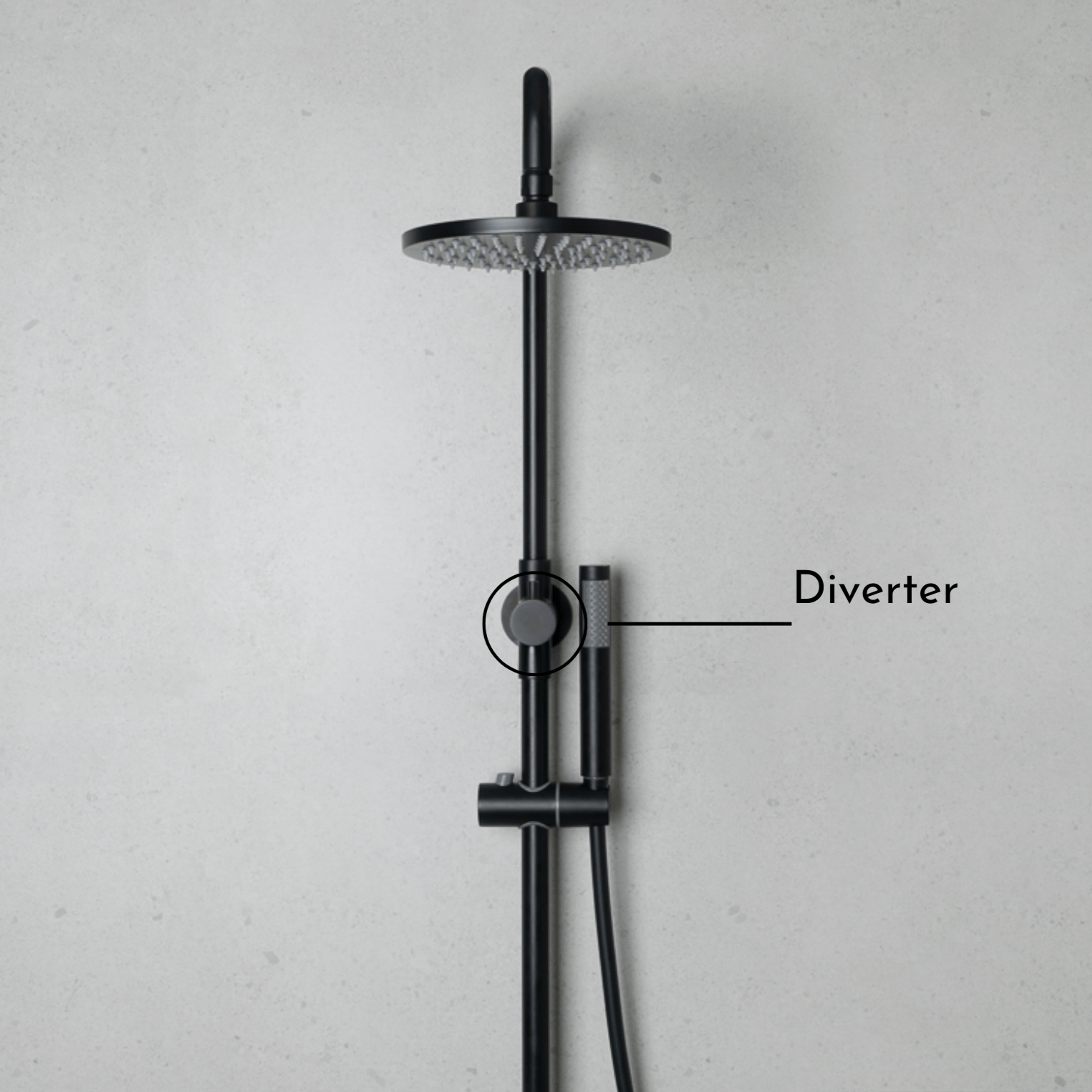 The adjustable handheld sprayer can be raised, lowered, or angled to suit your needs, making it perfect for everyday showering, rinsing, and easy cleaning. Its added reach also makes washing kids or pets simpler and far more convenient, while helping you clean your shower area with ease. A built-in diverter allows you to switch the water flow between the rain shower and the sprayer with a simple turn, giving you complete flexibility.