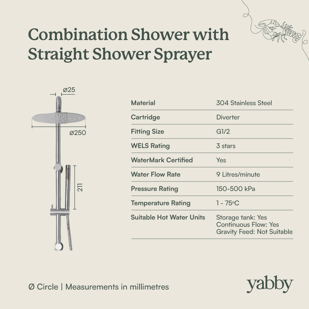 The combination shower requires taps or mixer to be purchased separately. Options linked below.
