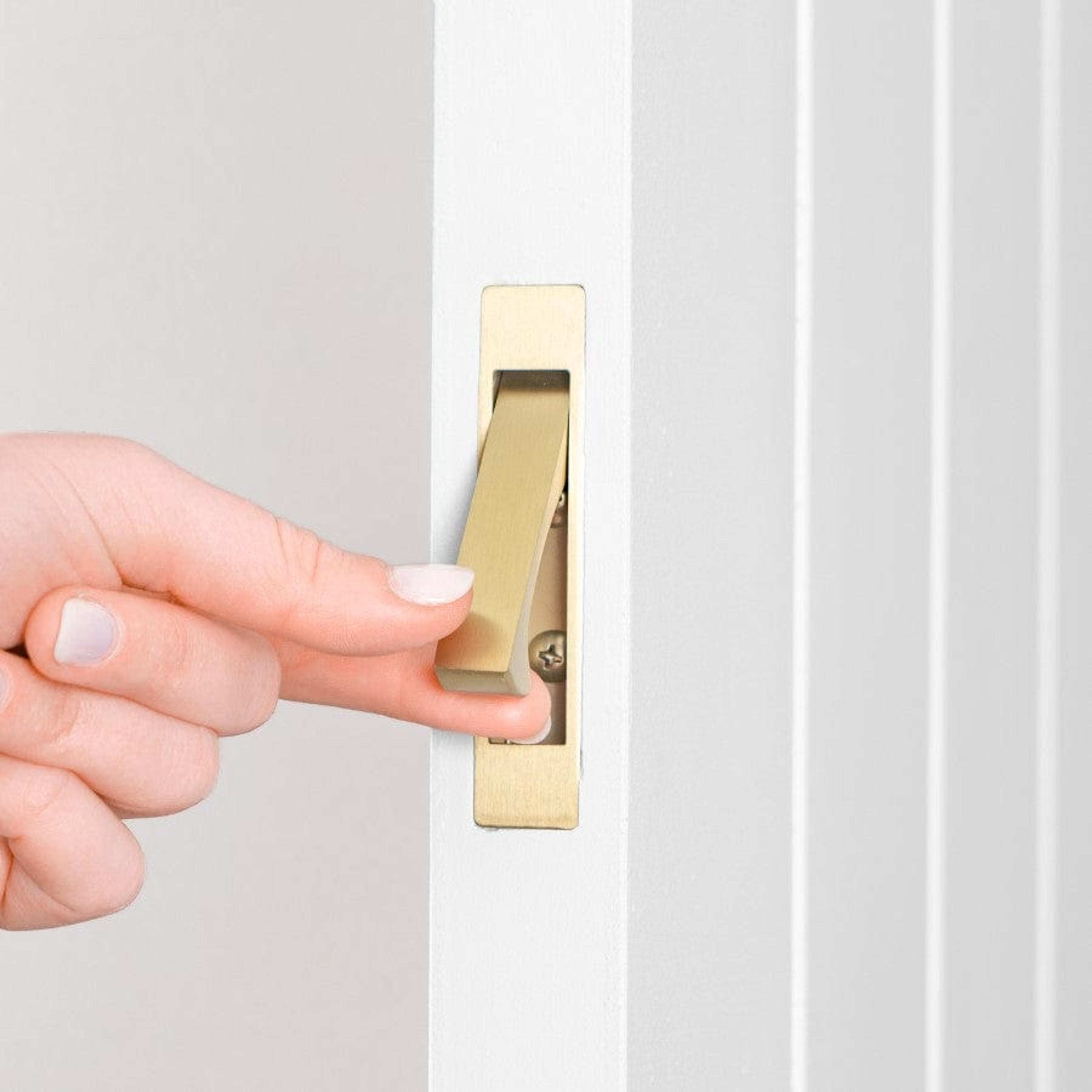 The Concealed Hook Pull Handle in Brushed Brass is a practical addition to your sliding doors, offering a sleek and modern design that is concealed when not in use. Its brushed brass finish adds a touch of warmth, while the easy grasp pull make it a functional and useful addition to the home.