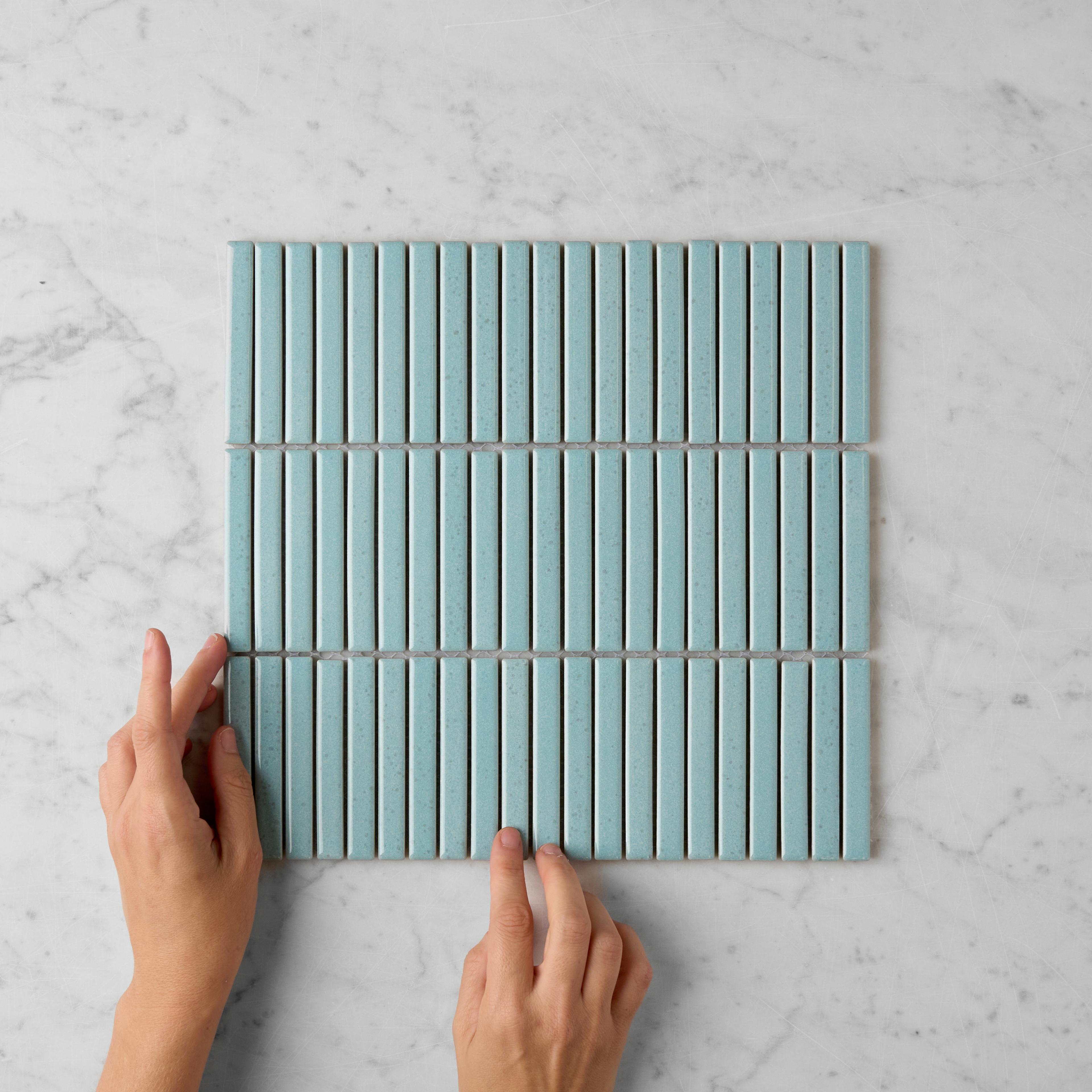 The Coogee Sky Blue Kit Kat Mosaic Tile is a glossy mosaic tile featuring a soft sky blue tone that brings a light, fresh feel to any space. Each tile is hand glazed, creating subtle variation and an organic finish that adds character and texture once installed.